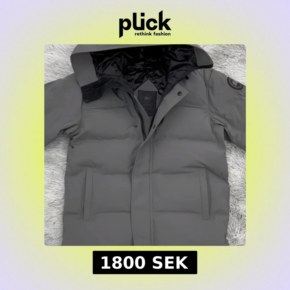 Snygg grå pufferjacka från Canada Goose med huva och svart patch på ärmen. Jackan har två sidofickor, dragkedja med logga och knappar framtill. Insidan är fodrad i svart och materialet är slitstarkt och vattenavvisande, perfekt för kalla dagar. Storlek S. Jackan användes i Februari förra året fick den som present i min födelsedag. Har växt mycket sedan dess. Vill verkligen sälja den snabbt därav det låga priset du kan sälja denna för dubbla priset Minst.
