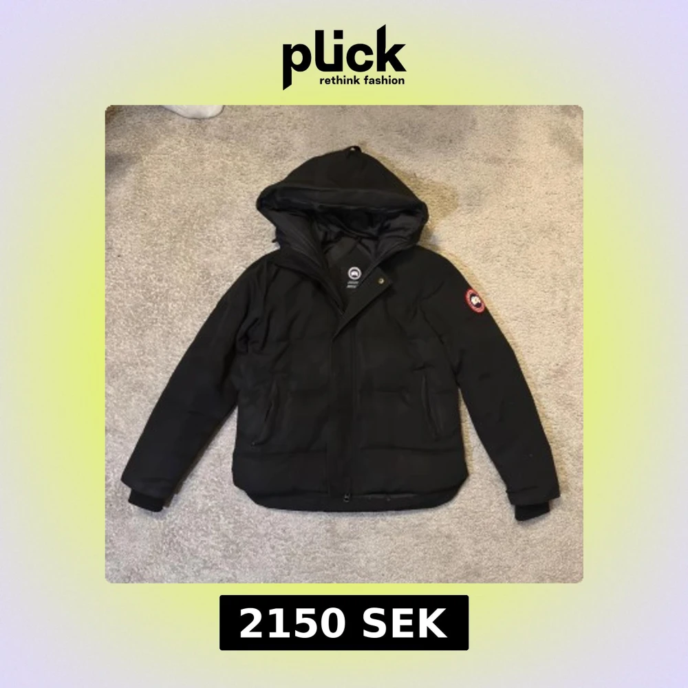 Säljer en svart dunjacka från Canada Goose med huva och klassisk logga på ärmen. Jackan har dragkedja framtill, två fickor och ribbade muddar. Perfekt för kalla dagar och riktigt snygg jacka. Endast använd en vinter och är i riktigt bra skick, vid funderingar är det att höra av sig privat!