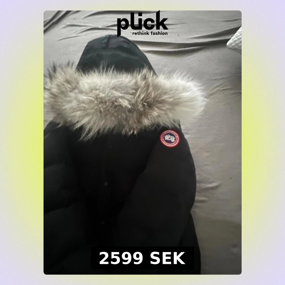 Säljer en svart dunjacka från Canada Goose med ikonisk patch på ärmen och stor huva med fluffig päls. Jackan har en clean look, knappar framtill och är perfekt för kalla dagar. Modellen är klassisk och riktigt varm, perfekt för dig som vill ha både stil och funktion.