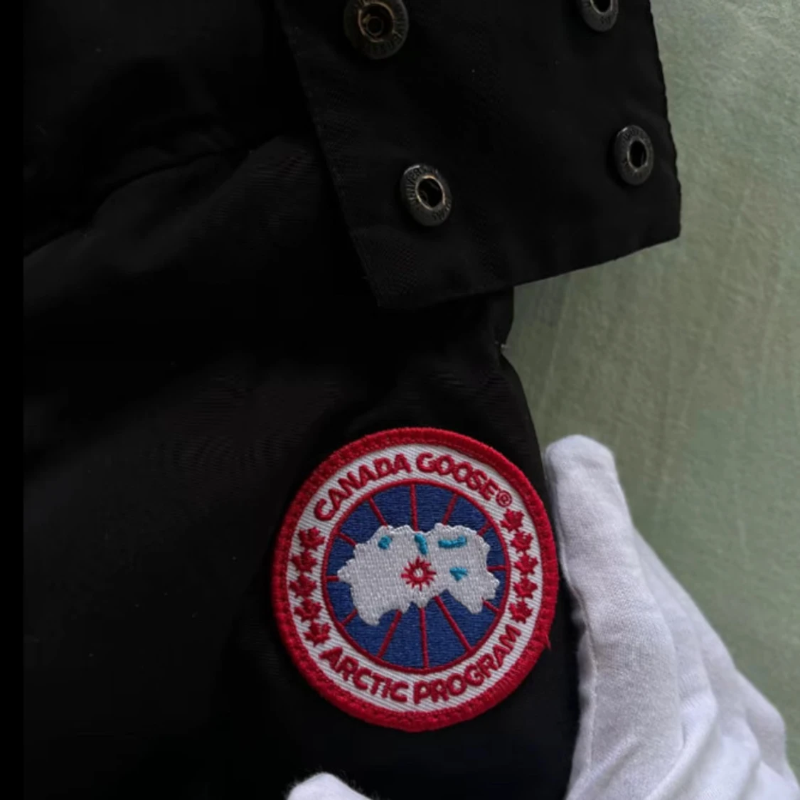 Svart dunjacka från Canada Goose med klassisk patch på ärmen. Jackan har huva, dragkedja och knappar framtill samt två stora fickor. Perfekt för kalla dagar och riktigt snygg streetstil. (SKRIV TILL MIG SÅ KAN JAG LÖSA PRISS OXÅ LITE MINDRE ÄN 800 KR