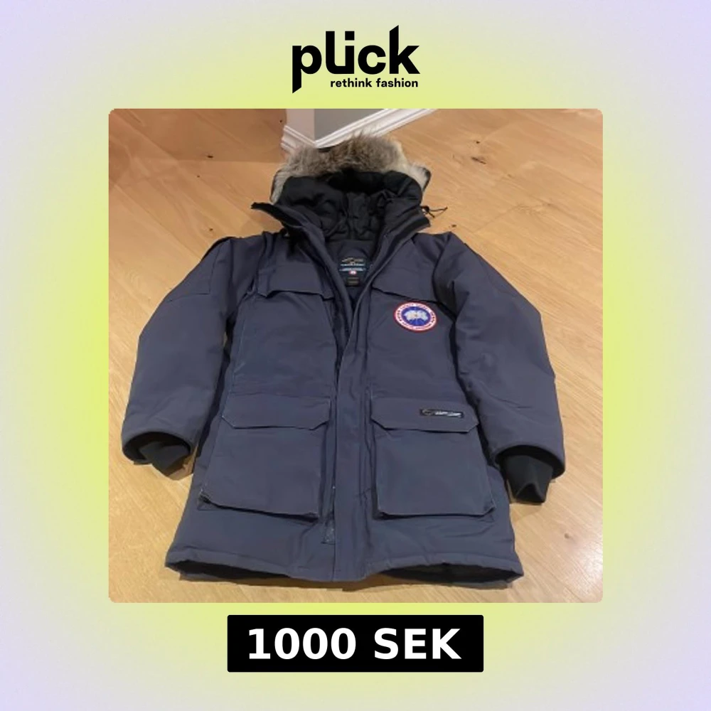 Säljer en mörkgrå Canada Goose dunjacka med stor huva och äkta pälsdetalj. Jackan har flera stora fickor, ribbade muddar och klassisk logga på bröstet. Perfekt för kalla vinterdagar! Storleken motsvarar 36/38 i tjejstorlek. Jackan har några år på nacken med är inte använd de senaste åren. En riktig klassisker!