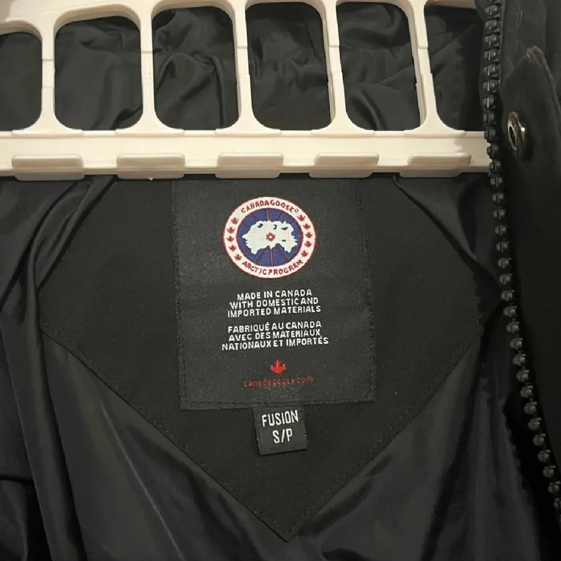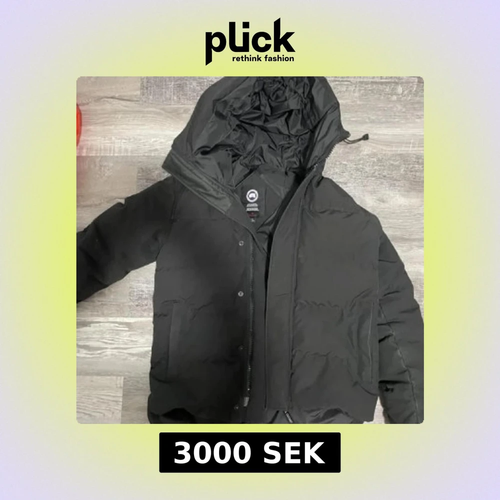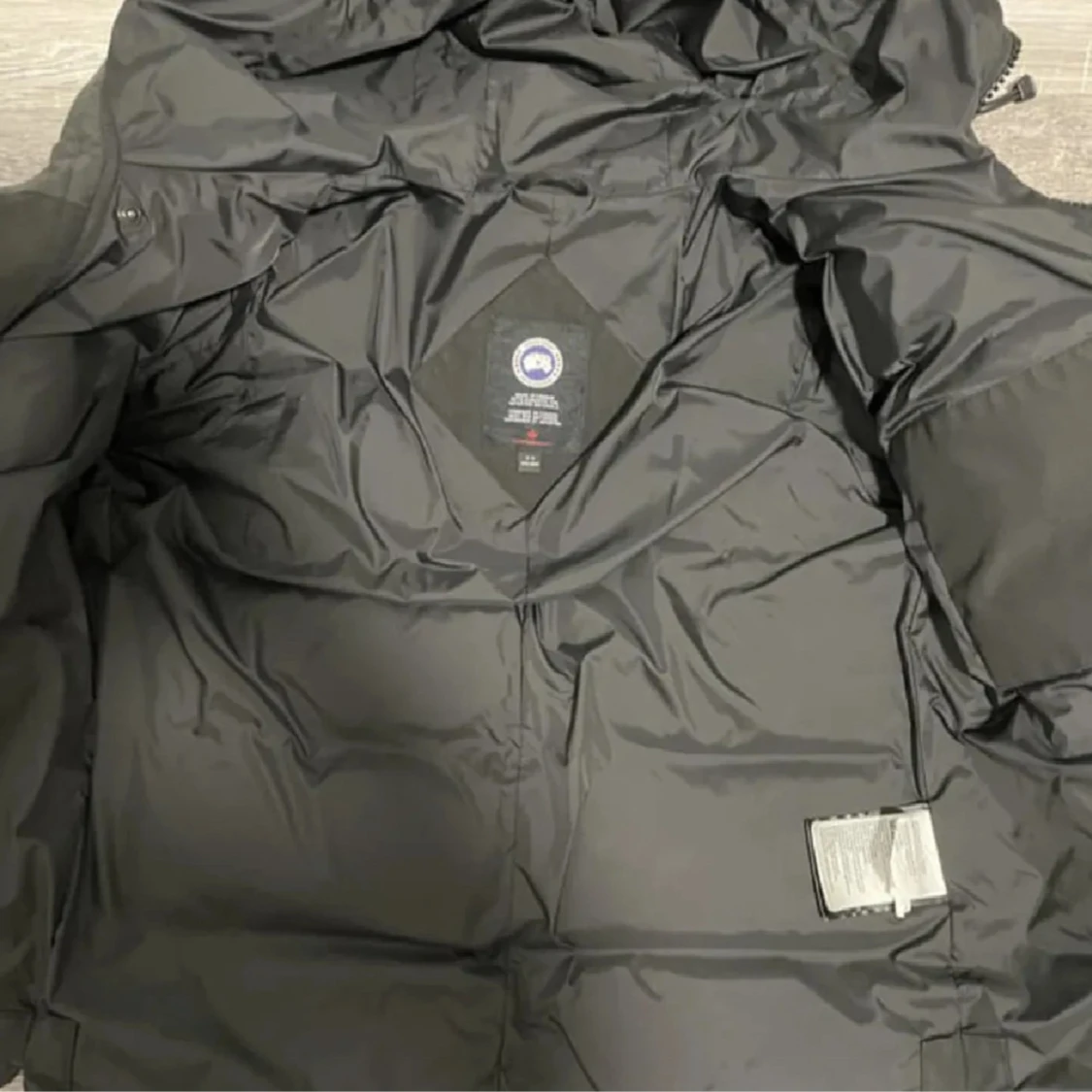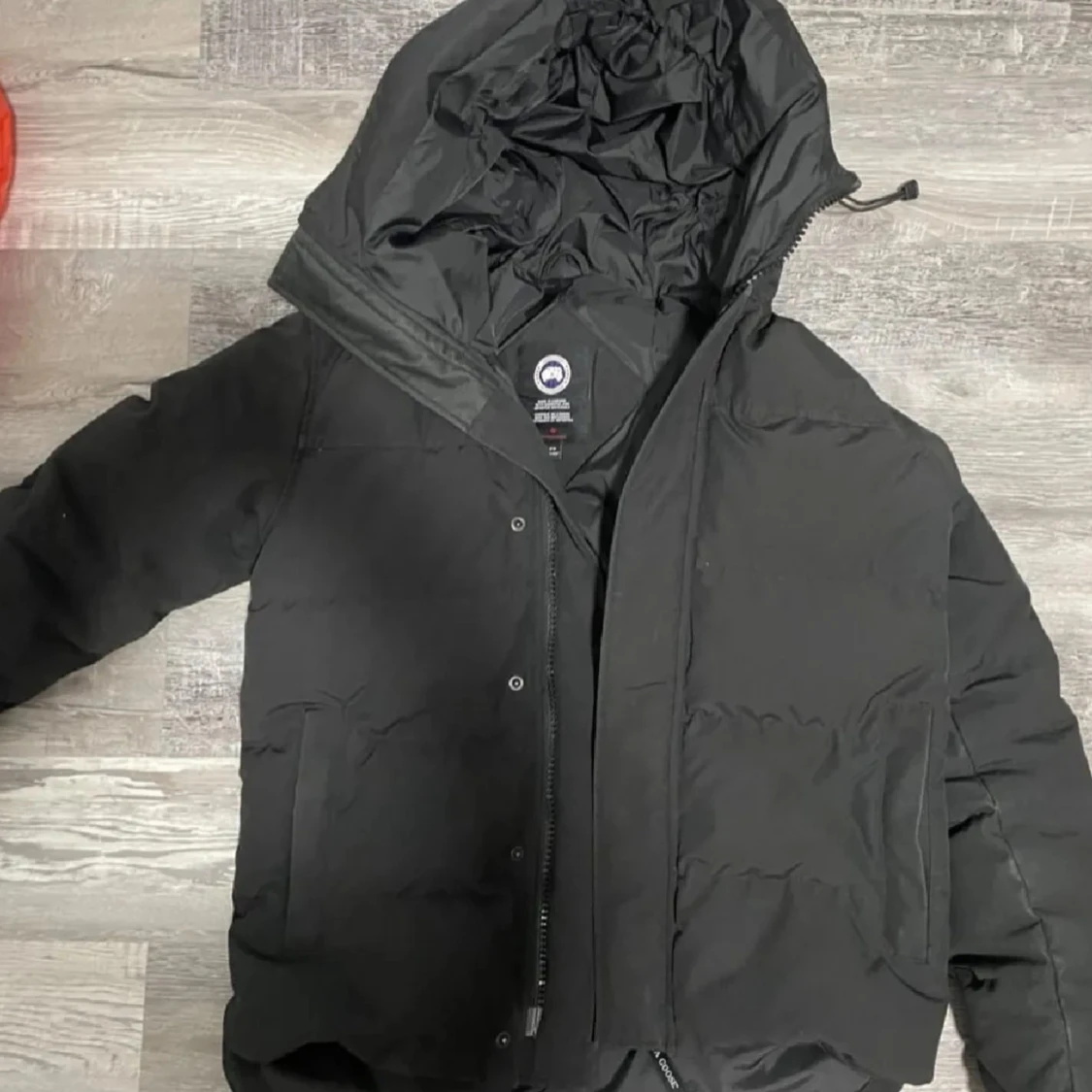 Svart dunjacka från Canada Goose med huva och klassisk logga på ärmen. Jackan har dragkedja och knappar framtill, två stora fickor och är perfekt för kalla dagar. Snygg och stilren design som håller dig varm hela vintern.