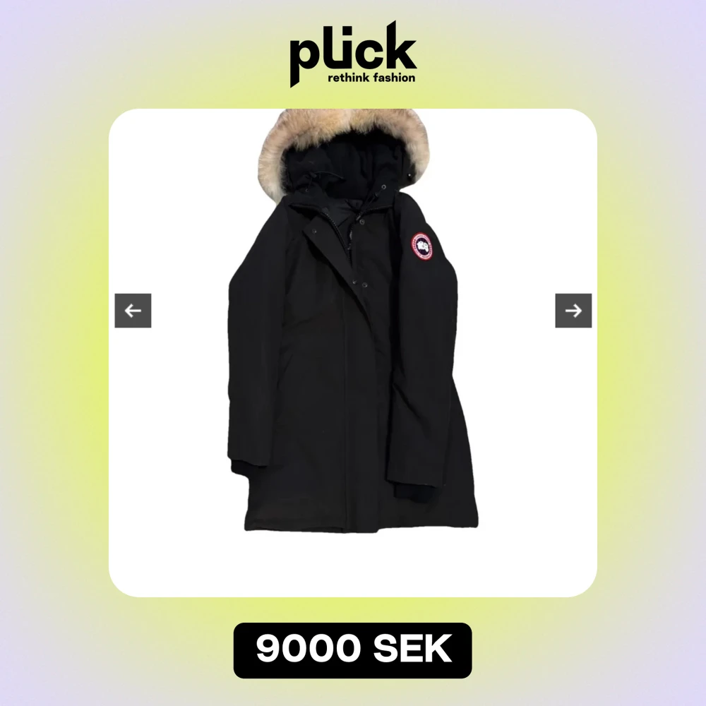 Säljer en svart parkajacka från Canada Goose i mycket bra skick. Jackan har en varm pälskantad huva och är perfekt för kalla vinterdagar. Den har en klassisk design med lång ärm och en snygg logga på ärmen. Perfekt för både stad och natur!