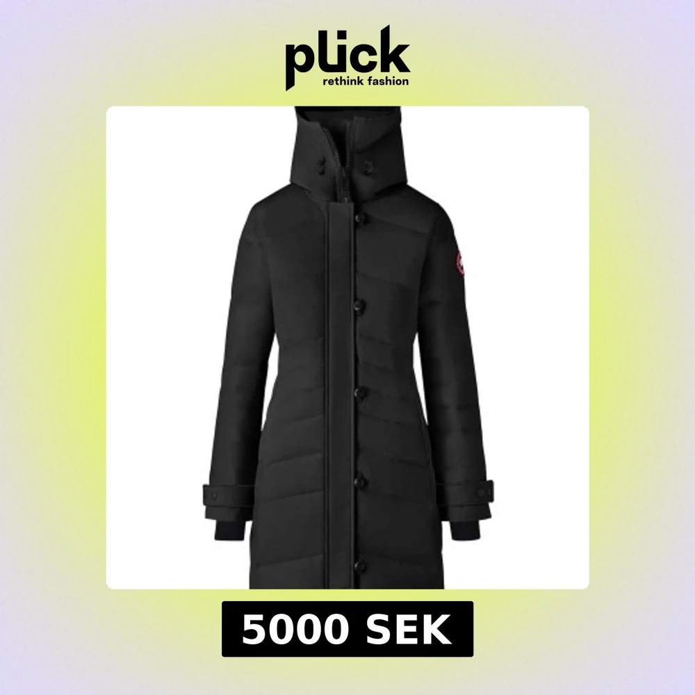 Säljer en svart lång dunjacka från Canada Goose med hög krage och snygga knappar framtill. Jackan har ett diskret märke på ärmarna. Perfekt för kalla dagar när du vill hålla stilen och värmen. Vill sälja den då det inte är min stil längre. Har päls till den ifall du vill ha det