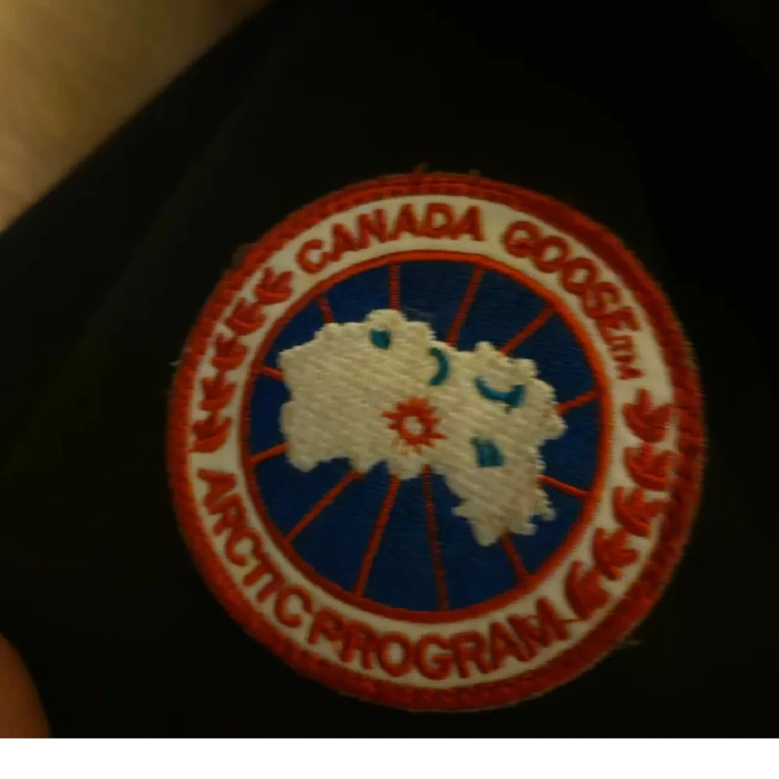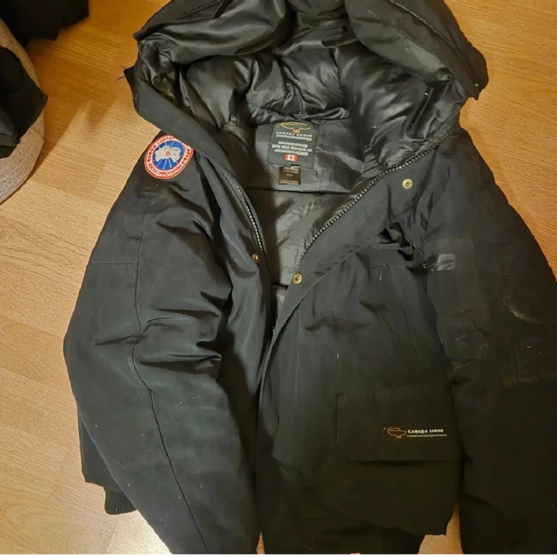 Svart dunjacka från Canada Goose med huva och klassisk röd-vit-blå patch på ärmen. Jackan har flera fickor, dragkedja och tryckknappar framtill. Perfekt för kalla vinterdagar och har en riktigt schysst streetstil. Bättre pris vid snabb affär såklart