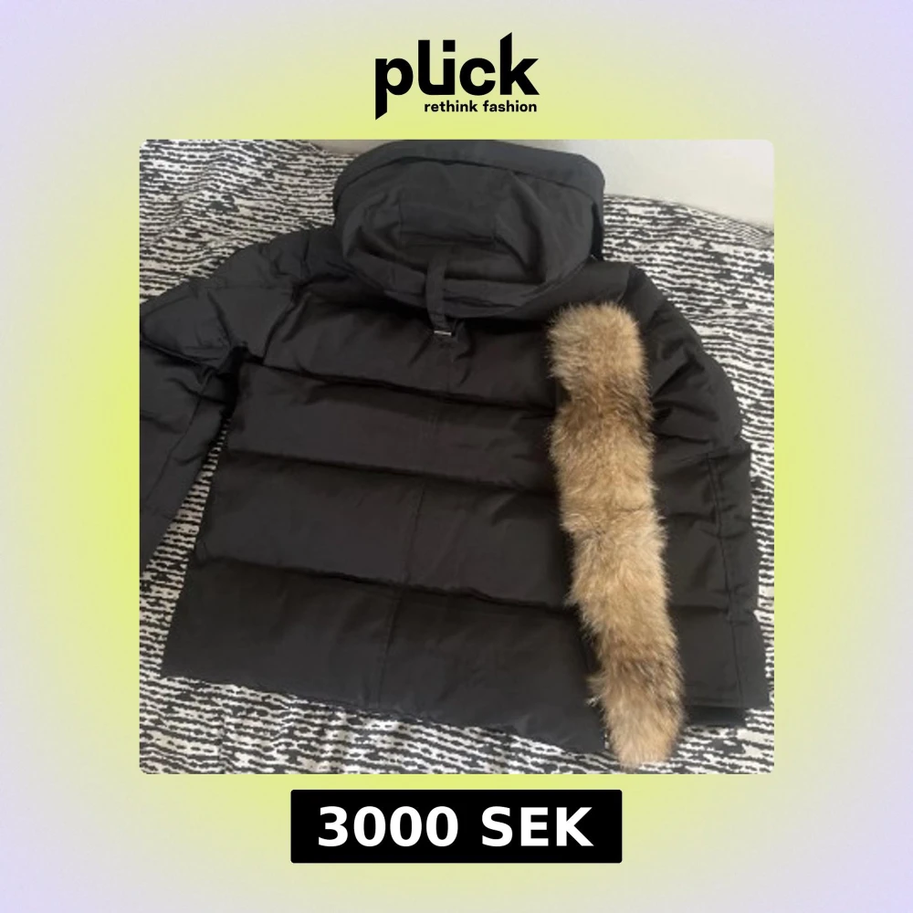 Snygg svart dunjacka från Canada Goose med fluffig beige päls runt huvan. Jackan har lång ärm, diskret logga på ärmen och praktiska fickor framtill. Perfekt för kalla vinterdagar när du vill hålla stilen och värmen.