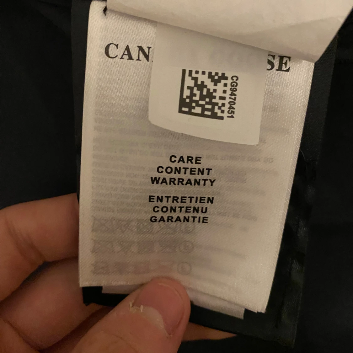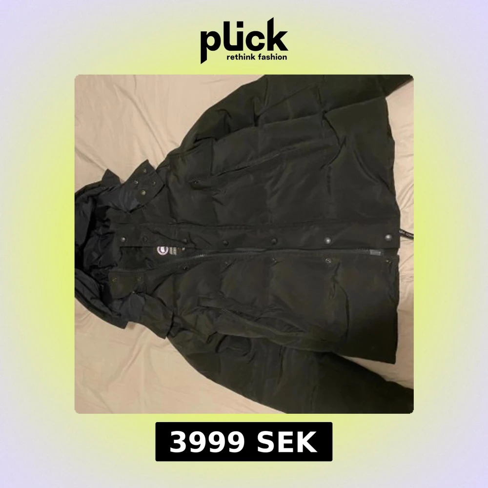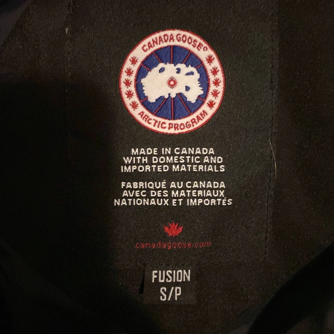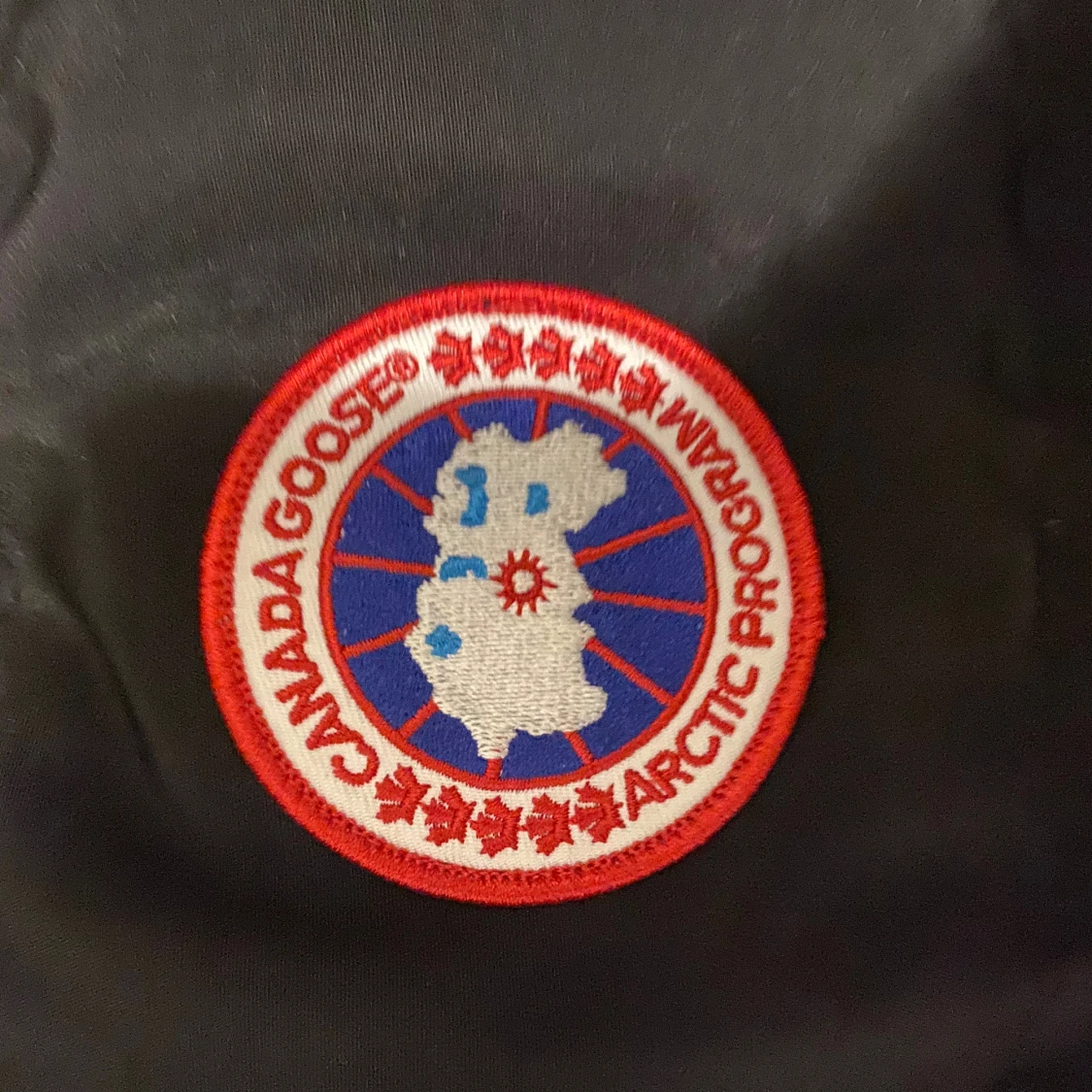 Svart pufferjacka från Canada Goose med huva och klassisk logga på insidan. Jackan har dragkedja och tryckknappar framtill, samt flera praktiska fickor. Perfekt för kalla vinterdagar och har en snygg, stilren look.
