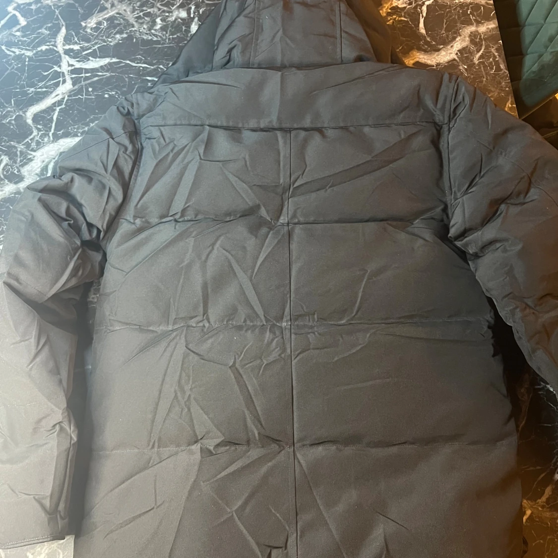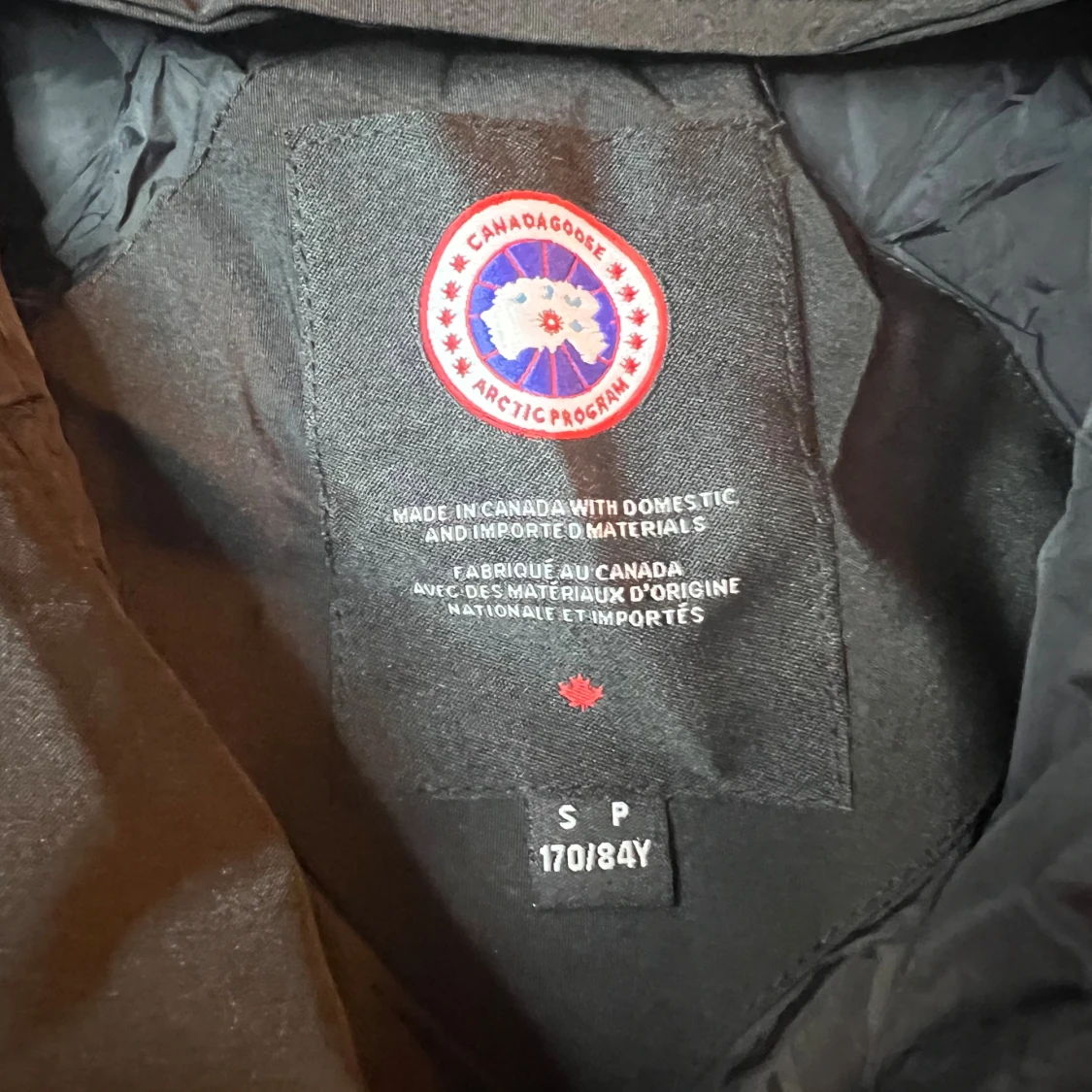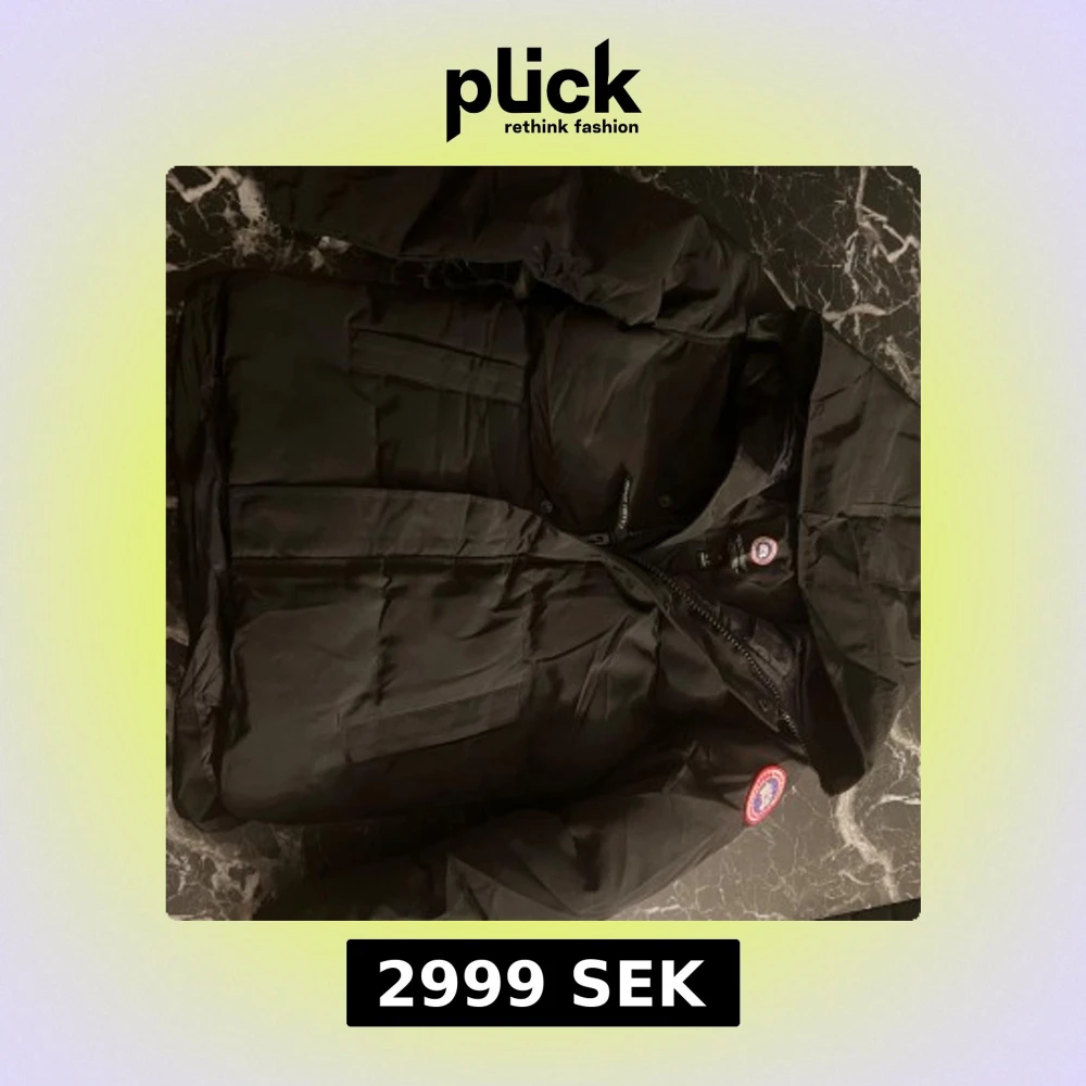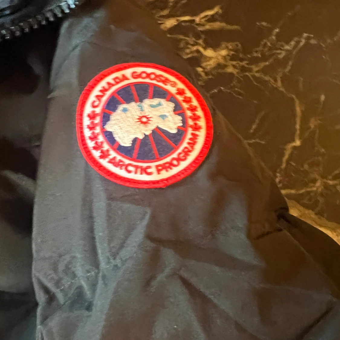 Säljer en svart dunjacka från Canada Goose med huva och klassisk logga på ärmen. Använt i bara en vecka. Jackan har flera fickor framtill, dragkedja och quiltad design. Perfekt för kalla dagar och riktigt snygg streetstil.