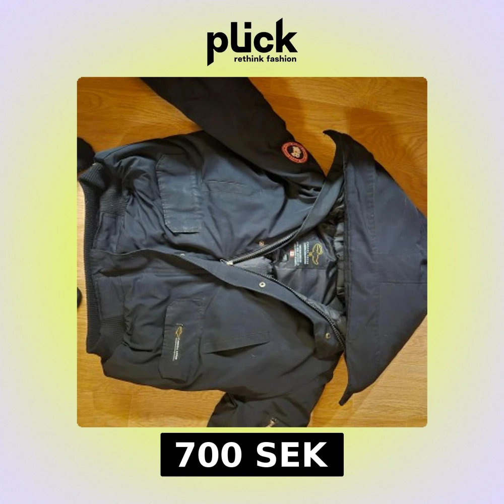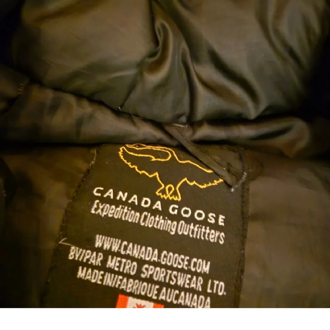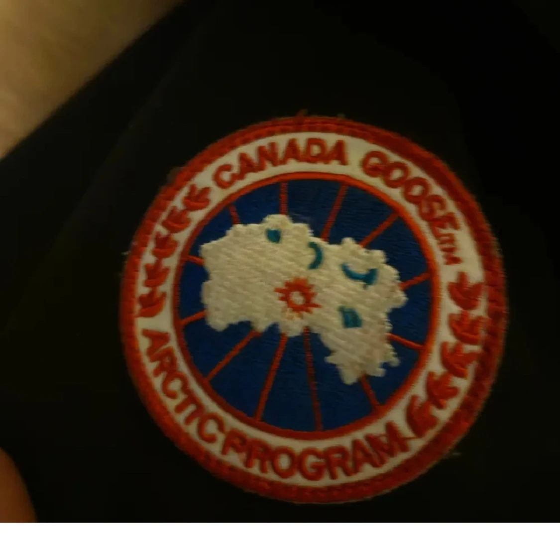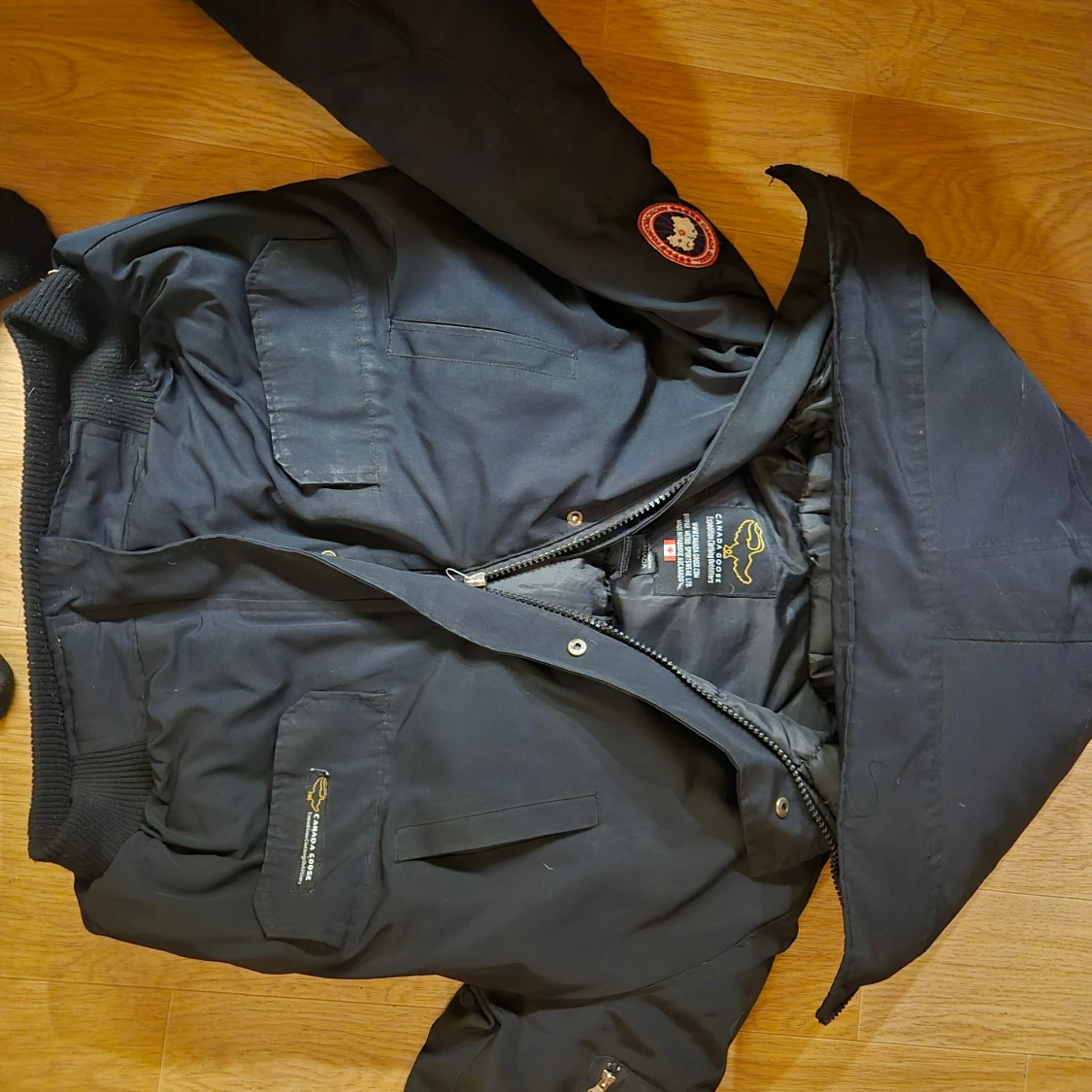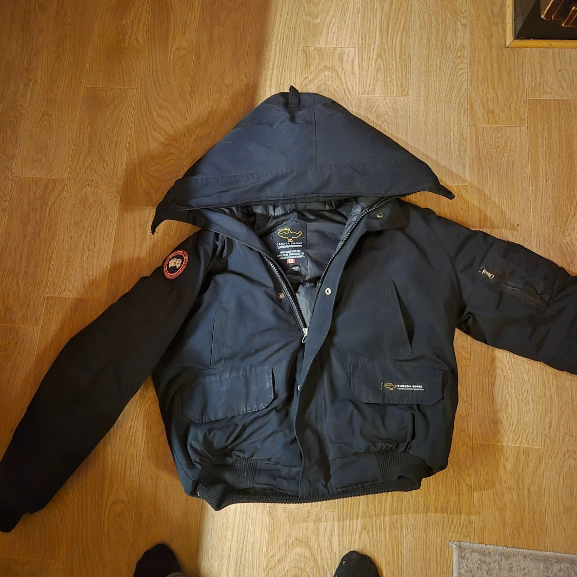 Svart dunjacka från Canada Goose med huva, ribbade muddar och flera fickor framtill. Jackan har klassisk logotyp på ärmen och broderad etikett på bröstet. Perfekt för kalla dagar med sin tjocka och isolerande design. Dragkedja och knappar framtill. Lämnad till kemtvätt