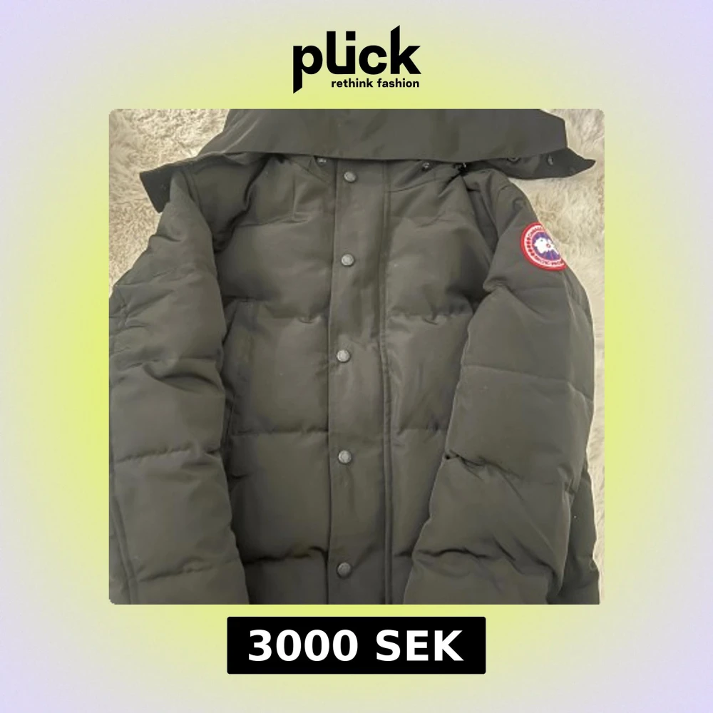 Päls och dustbag kommer med. Svart dunjacka från Canada Goose med huva och klassisk patch på ärmen. Jackan har quiltad design, knappar framtill och är riktigt tjock och varm. Perfekt för kalla dagar och har en clean, stilren look som funkar till det mesta.