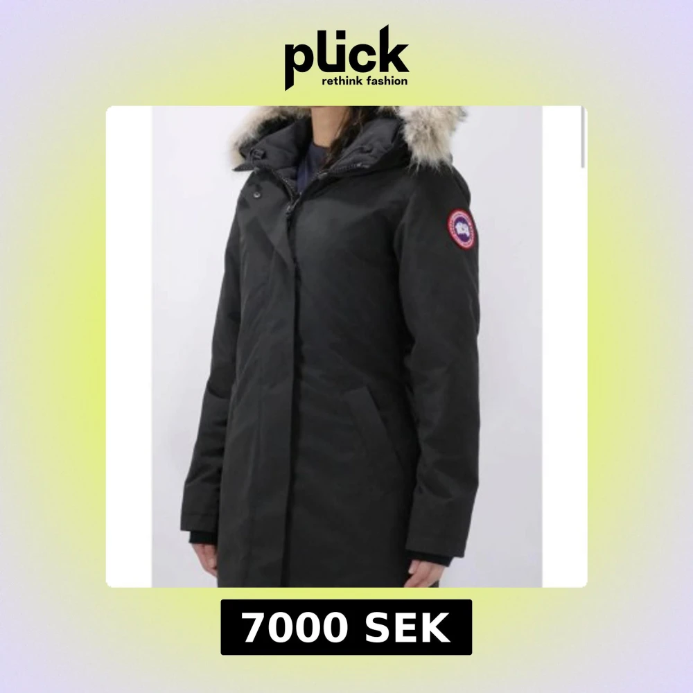 Säljer en stilren svart parkajacka från Canada Goose med pälsdetalj på huvan, modellen heter Parka Victoria . Jackan har en medellång passform och är perfekt för kalla vinterdagar. Endast använt 2 vintrar och är i nyskick. Storlek XS passar S. Behöver sälja akut!!