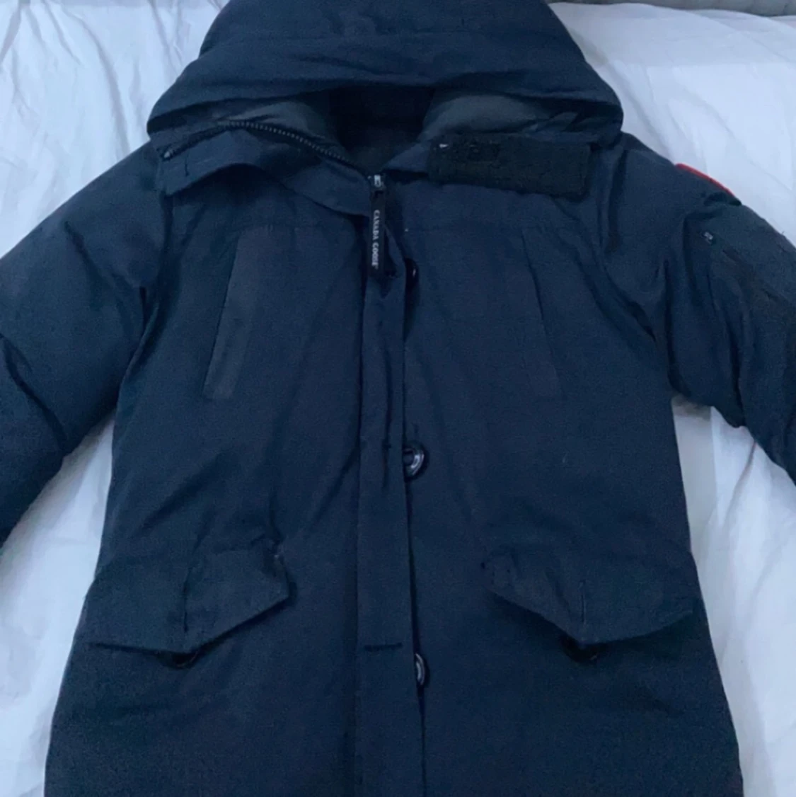 Canada goose montebello parka. Använd i gott skick. Mörkblå med vanlig logga. Köpte den förra vintern och säljer den då den inte passar längre.