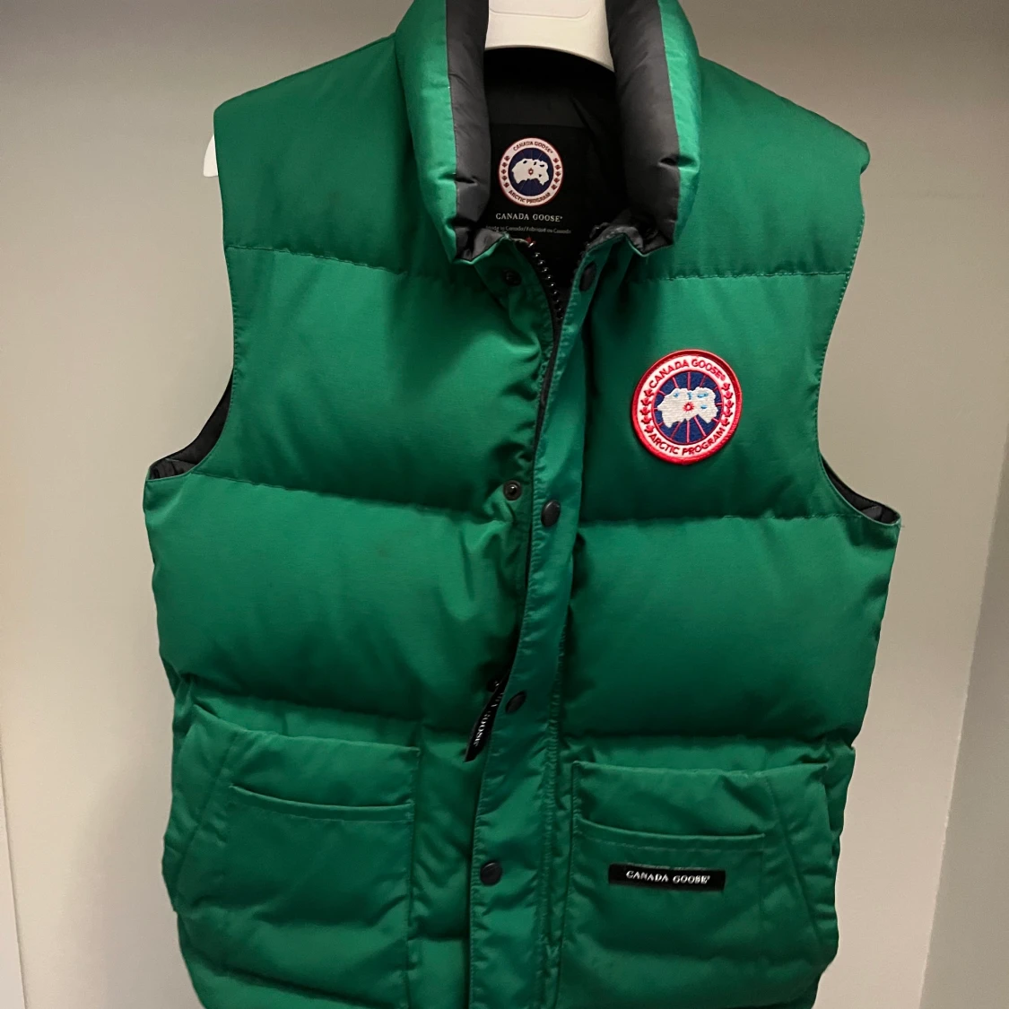 Canada Gosse väst i fint skick med väldigt ovanlig färg! strl XS men passar även S o M Cond 8,5/10, färg pinegreen/ grön. Price less (Går inte att få tag på en i denna färg)! Nypris 7000kr