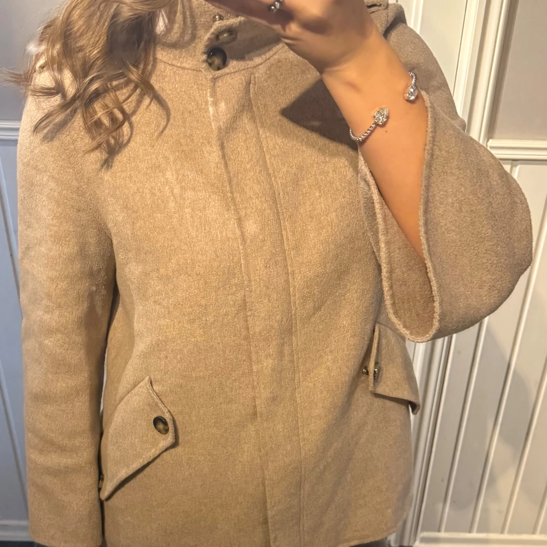 Väldigt snygg poncho/cape likande jacka, säljs inte på Zara längre. Nypris: 800kr🩷