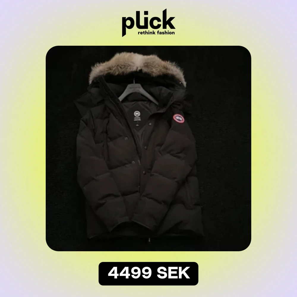 Svart dunjacka från Canada Goose. Två stora framfickor som stängs med dragkedja med två mindre fickor inuti med fleecefoder, en innerficka och avtagbar naturpäls på luvan. Jackan är i använt men bra skick,nypris ca 16 000