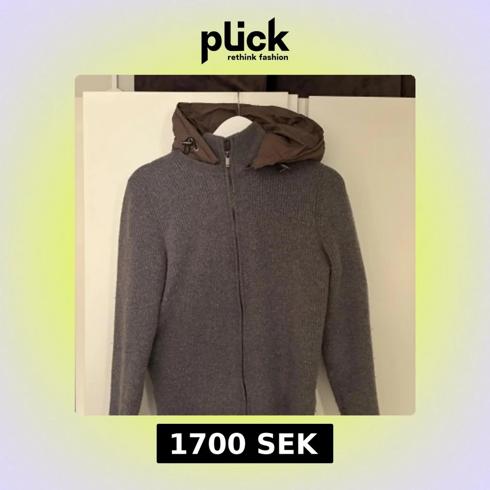 Mysig grå stickad cardigan jacka från massimo dutti med dragkedja framtill och en brun quiltad huva. Jackan har långärmad design och ribbad struktur, perfekt för kyliga dagar. Enkel och stilren look som passar till det mesta.