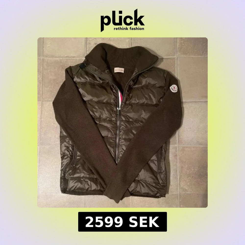 Snygg olivgrön cardigan från Moncler med stickade ärmar och krage. Jackan har quiltad front i glansigt material, dragkedja och Moncler-logga på ärmen. Perfekt för dig som vill ha en stilren och exklusiv look med sportig touch.