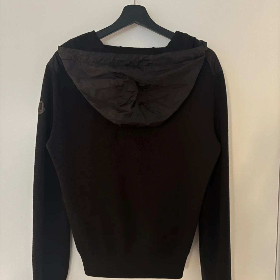 Pris kan diskuteras! En svart moncler maglione tricot cardigan, som har stickade ärmar och rygg med en huva och framsida som är i ett mer vindjacks liknade material. Det är en äldre modell och sälj pågrund ut av att den har kommit till användning ca 10 gånger.