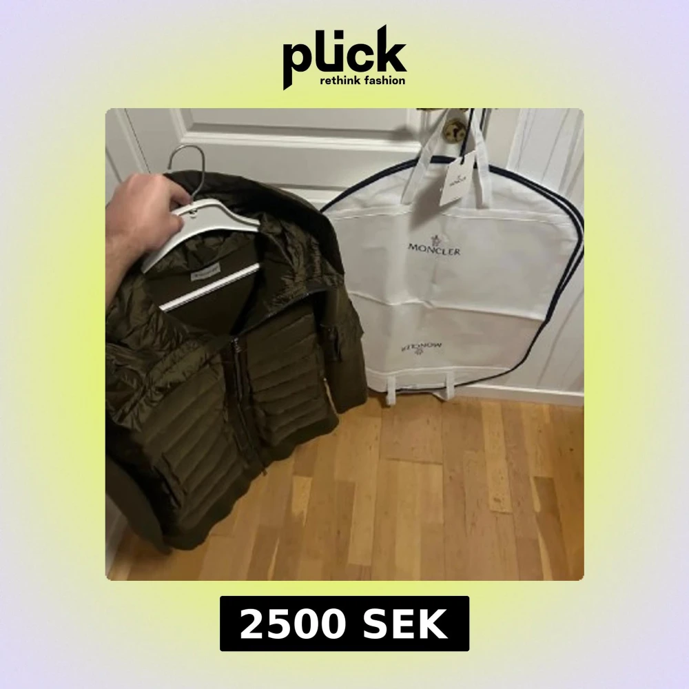 KVITTO 🧾 FINNS ! Säljer en olivgrön Moncler dunjacka med stickade ärmar och vadderad kropp. Jackan har dragkedja framtill, huva och en ficka med dragkedja på ärmen. Klassisk Moncler-logga på vänster ärm och snygga detaljer. Perfekt för kyliga dagar.