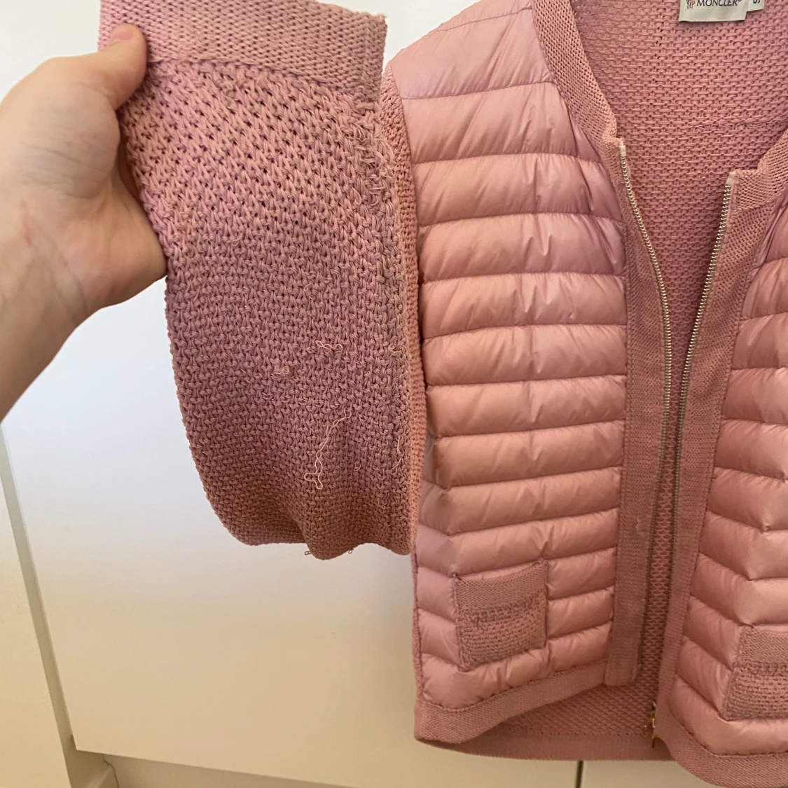 Lägger upp min moncler cardigan på nytt💕jättesnygg och perfekt nu till våren och sommaren💕den är i använt skick men fortfarande väldigt fin, effekterna på ryggen och underarmen syns inte när man har på sig jackan💕BUD JUST NU:3000, kom med bud privat💕