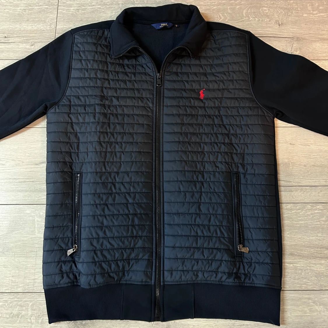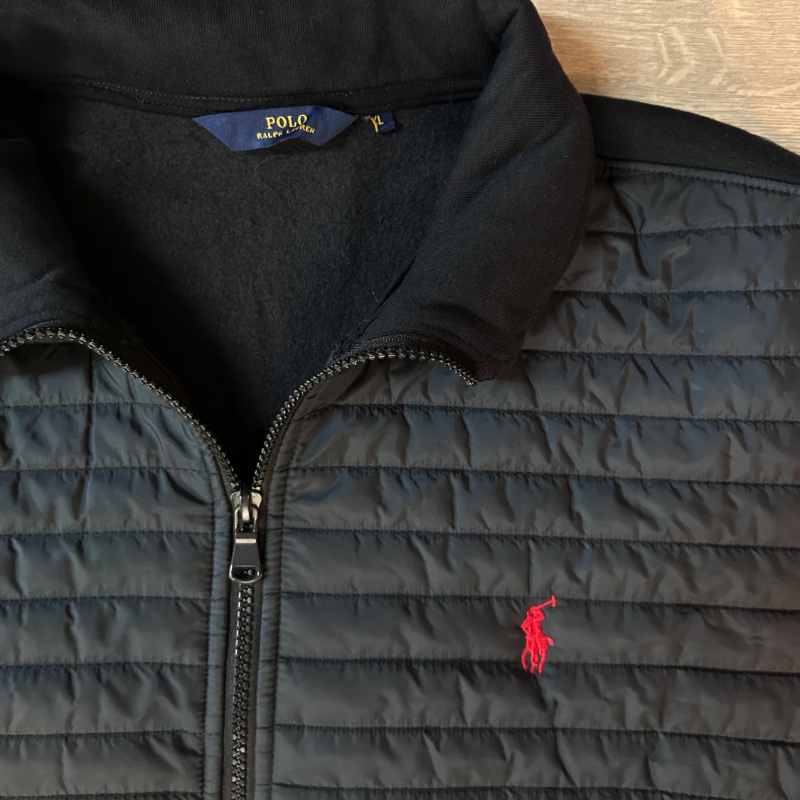 Säljer en svart quiltad jacka från Polo Ralph Lauren med dragkedja och två fickor framtill. Jackan har långärmade partier i mjukare material och klassisk krage. Liten röd logga broderad på bröstet. Perfekt för kyliga dagar. Passar L också 😁