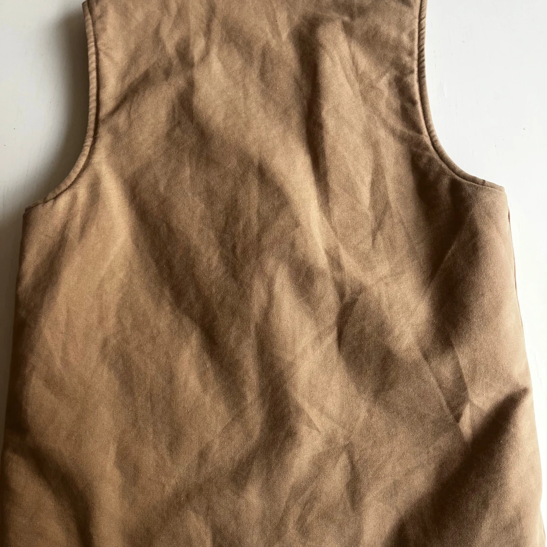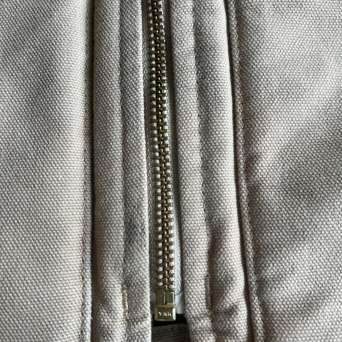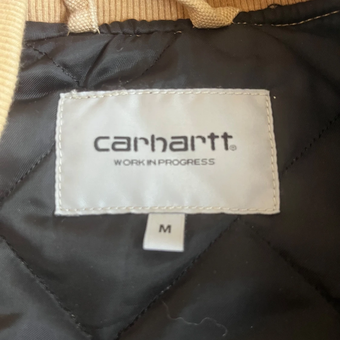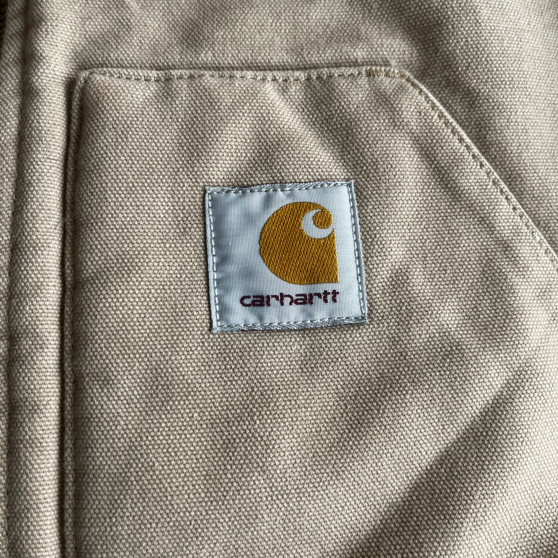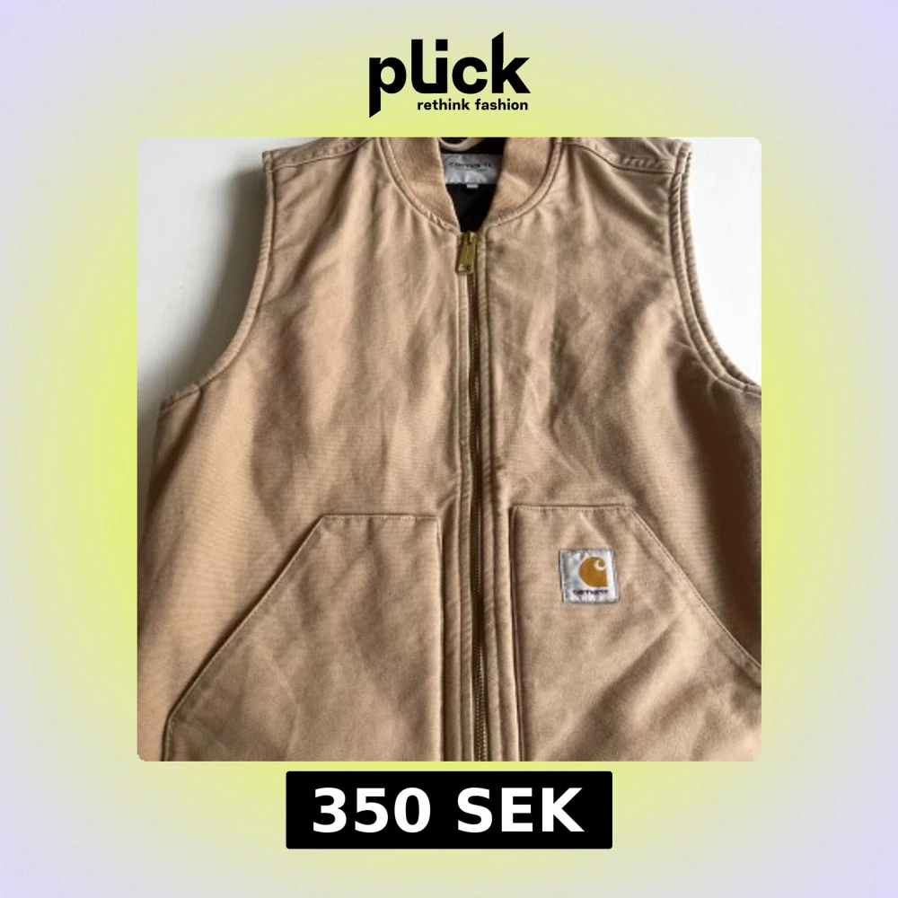 Säljer en snygg beige väst från Carhartt med dragkedja och praktiska fickor. Perfekt för lager-på-lager under höst och vår. Klassisk design med Carhartt-logga på framsidan. Materialet är kanvas, en lite fläck typ längst ner på dragkedjan, annars bra skick