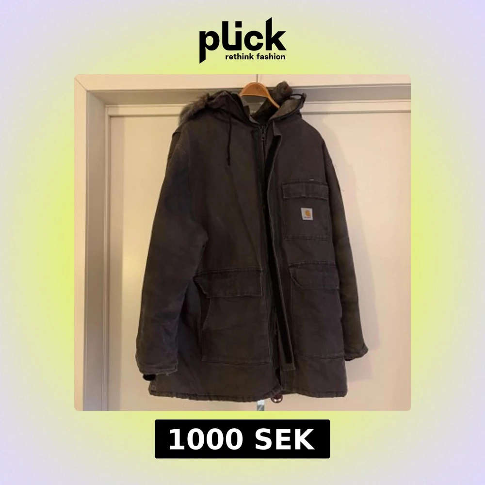 Säljer en grå/mörkgrön vinterjacka från Carhartt med pälshuva. Jackan har stora fickor framtill, dragkedja och snörning till huvan. Den är vintage och köpt begagnad, men helt oanvänd sen dess, (inga defekter). Kontakta vid funderingar!
