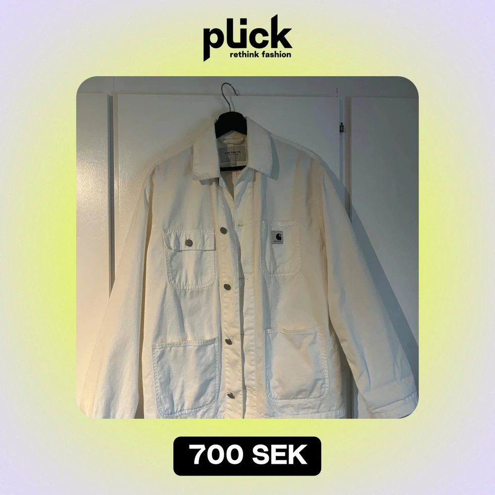 Vit Carhartt jacka storlek L men passar andra storlekar. Nypris: 1999kr Är i nyskick inga fläckar.