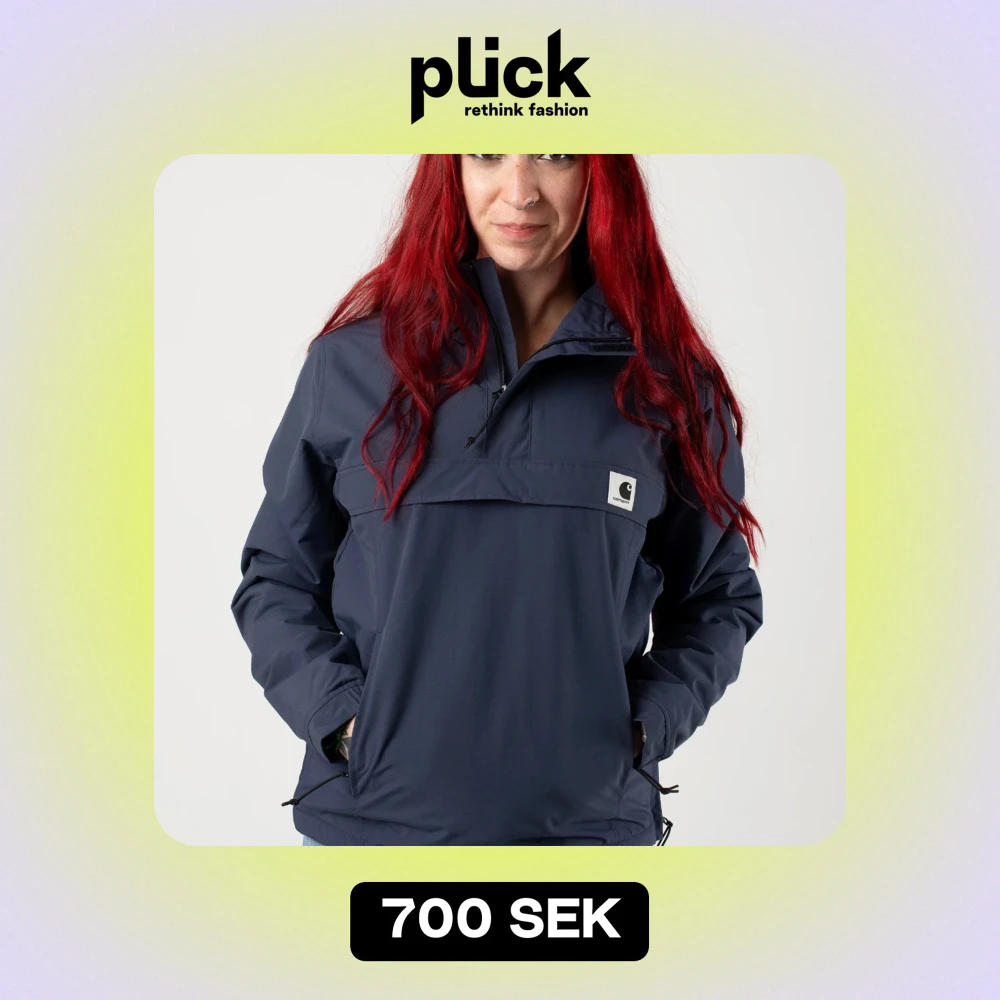 Säljer en snygg mörkblå vindjacka från Carhartt. Jackan har en praktisk huva och en halv dragkedja framtill. Perfekt för höst och vår med sin stilrena design och funktionella fickor. Den är i bra skick och passar perfekt för vardagsäventyr. 🌀