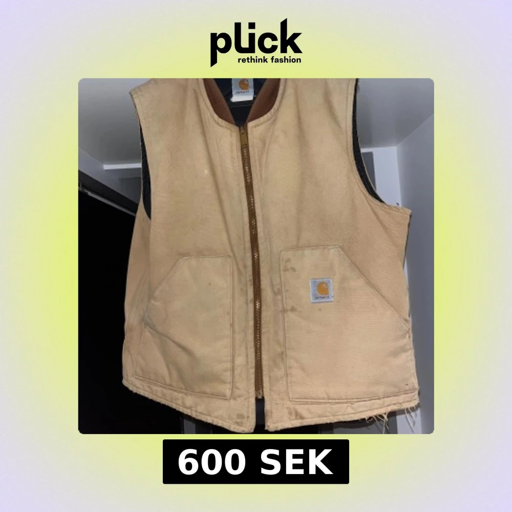 Säljer en beige väst från carhartt. Västen har en quiltad insida som gör den varm och bekväm att bära under kallare dagar och fungerar utmärkt som ytterplagg under höst och vår eller som mellanlager under vintern. Den har två stora framfickor, dragkedja framtill och den välkända Carhartt-loggan på fickan. Västen är välanvänd men i gott skick med vissa fläckar och lite slitage längst ner, vilket ger den en robust och autentisk look. Storlek saknas på etiketten men motsvarar M/L.
