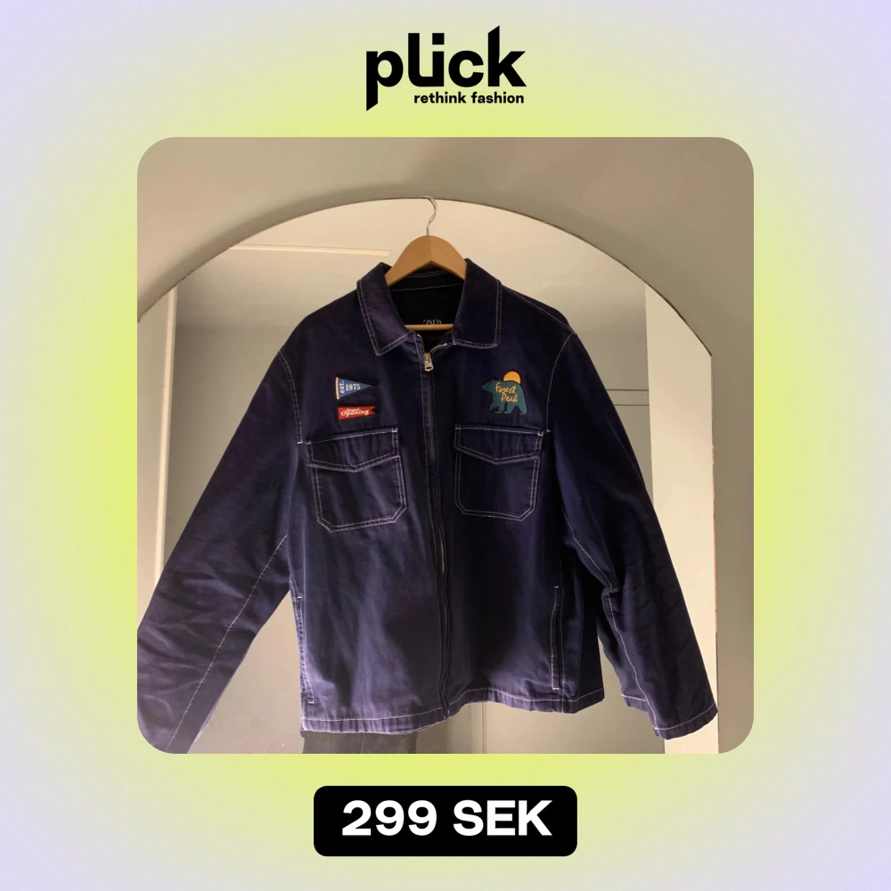 Säljer en snygg mörkblå jacka från Zara med coola broderade detaljer på bröstet. Jackan har en dragkedja framtill och två stora fickor. Perfekt för höst och vår! Passar både till vardags och lite mer avslappnade tillfällen. 🧥✨