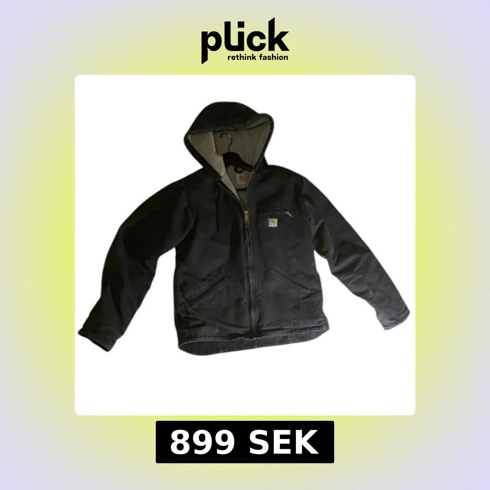 Säljer en svart jacka från Carhartt med huva och dragkedja. Jackan har en mysig fleecefodring och en bröstficka med dragkedja. Perfekt för kyliga dagar.