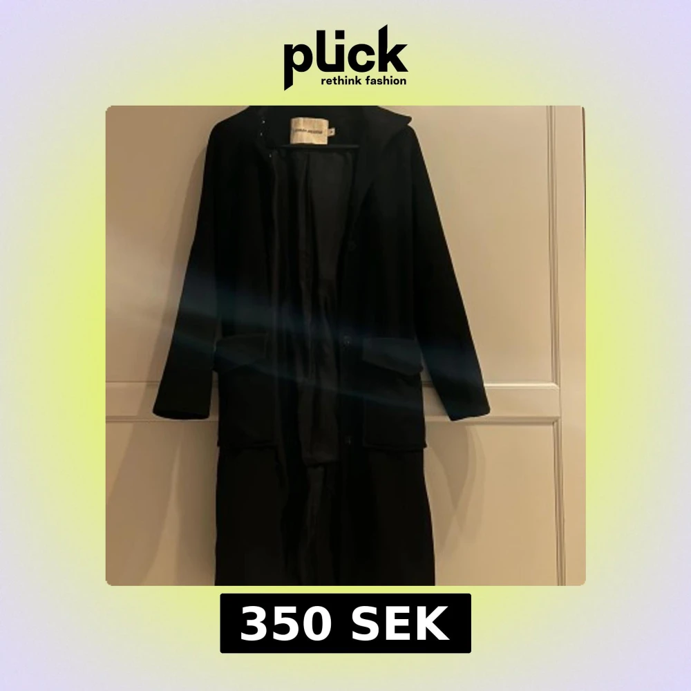 Elegant svart kappa från Carin Wester med knappar och knytskärp i midjan. Perfekt för kyligare dagar med sin långa design och klassiska stil.