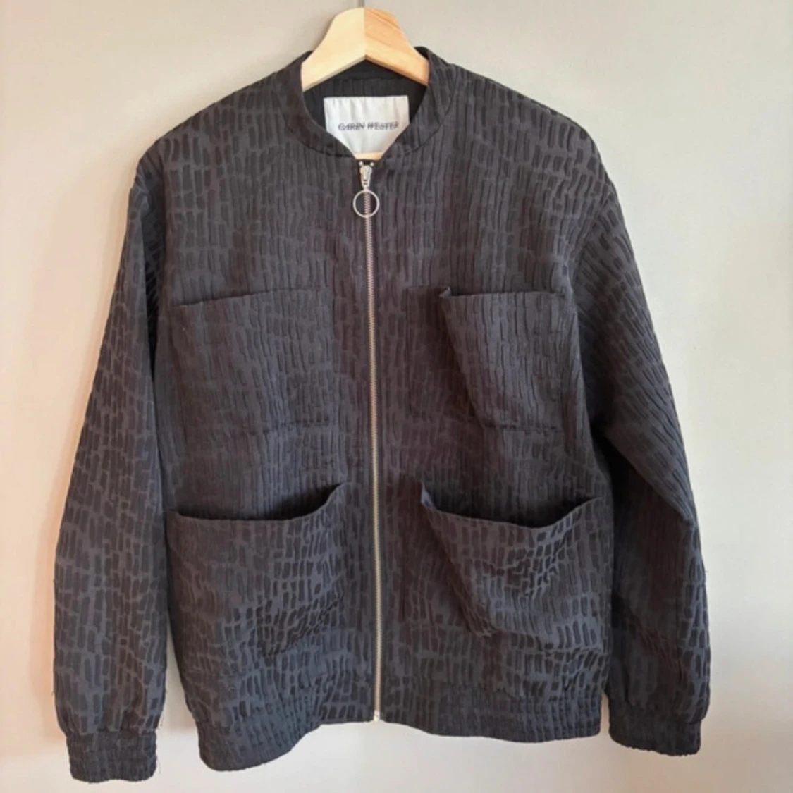 Snygg svart bomberjacka från Carin Wester med ett unikt mönster och dragkedja framtill. Skriv vid frågor!🖤