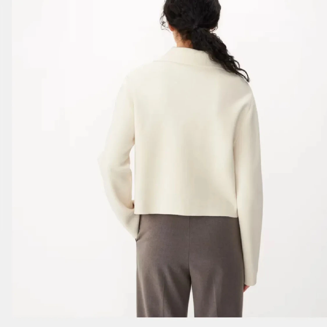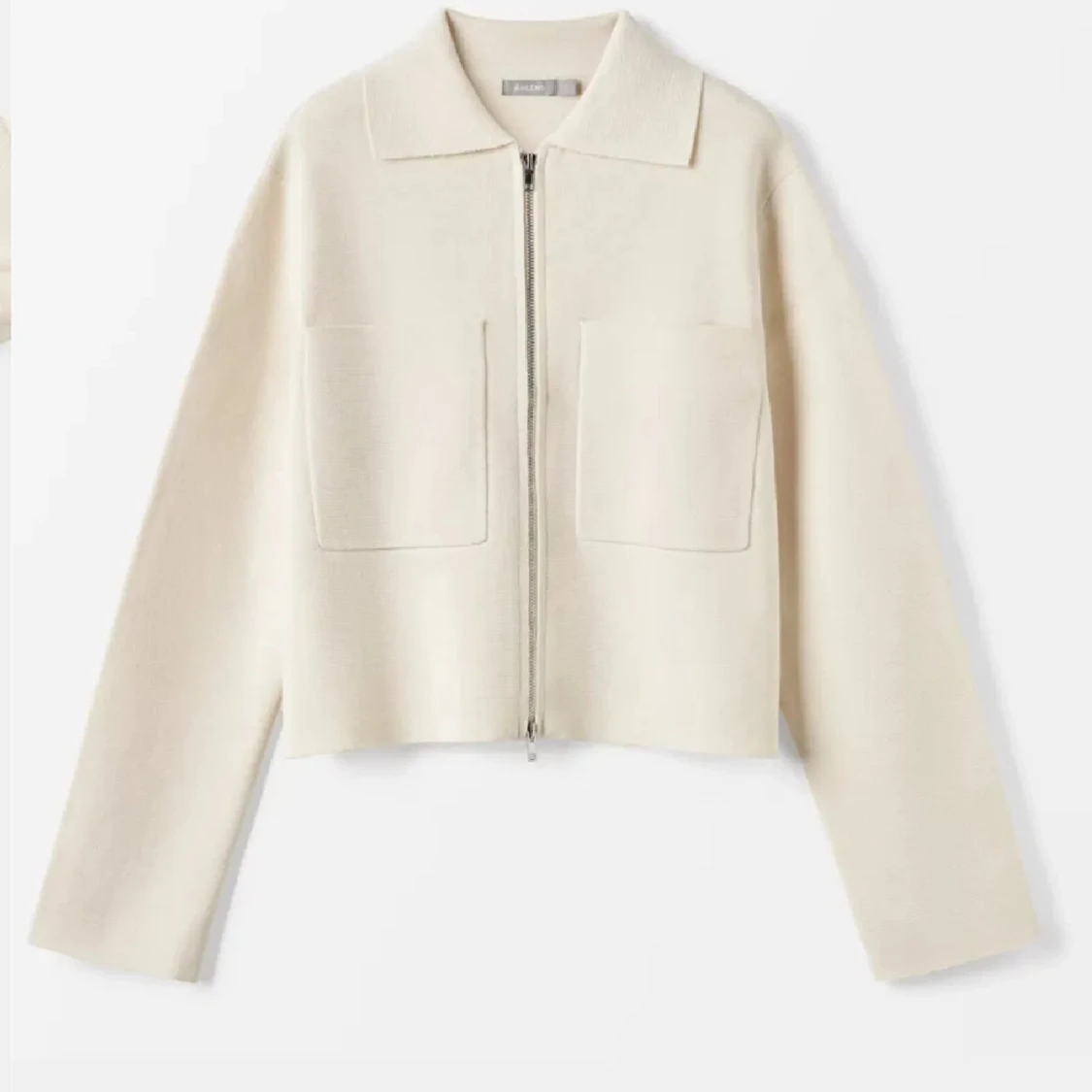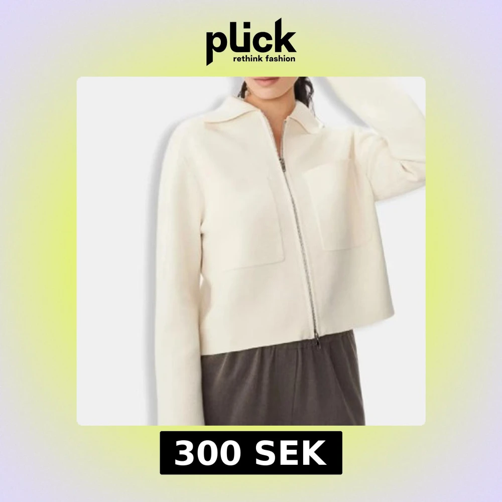 Minimalistisk vit overshirt från ARKET med croppad passform, två stora bröstfickor och hel dragkedja framtill. Jackan har klassisk krage och är tillverkad i ett mjukt material som ger en clean och modern look.