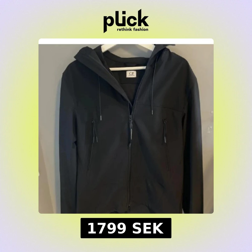 Säljer en svart softshell jacka från C.P. Company med ikoniska glasögon i huvan. Jackan har dragkedja framtill, två bröstfickor med dragkedja och justerbar huva med snörning. Skyddar bra mot kyla speciellt med tröja under. Skriv för fler bilder!