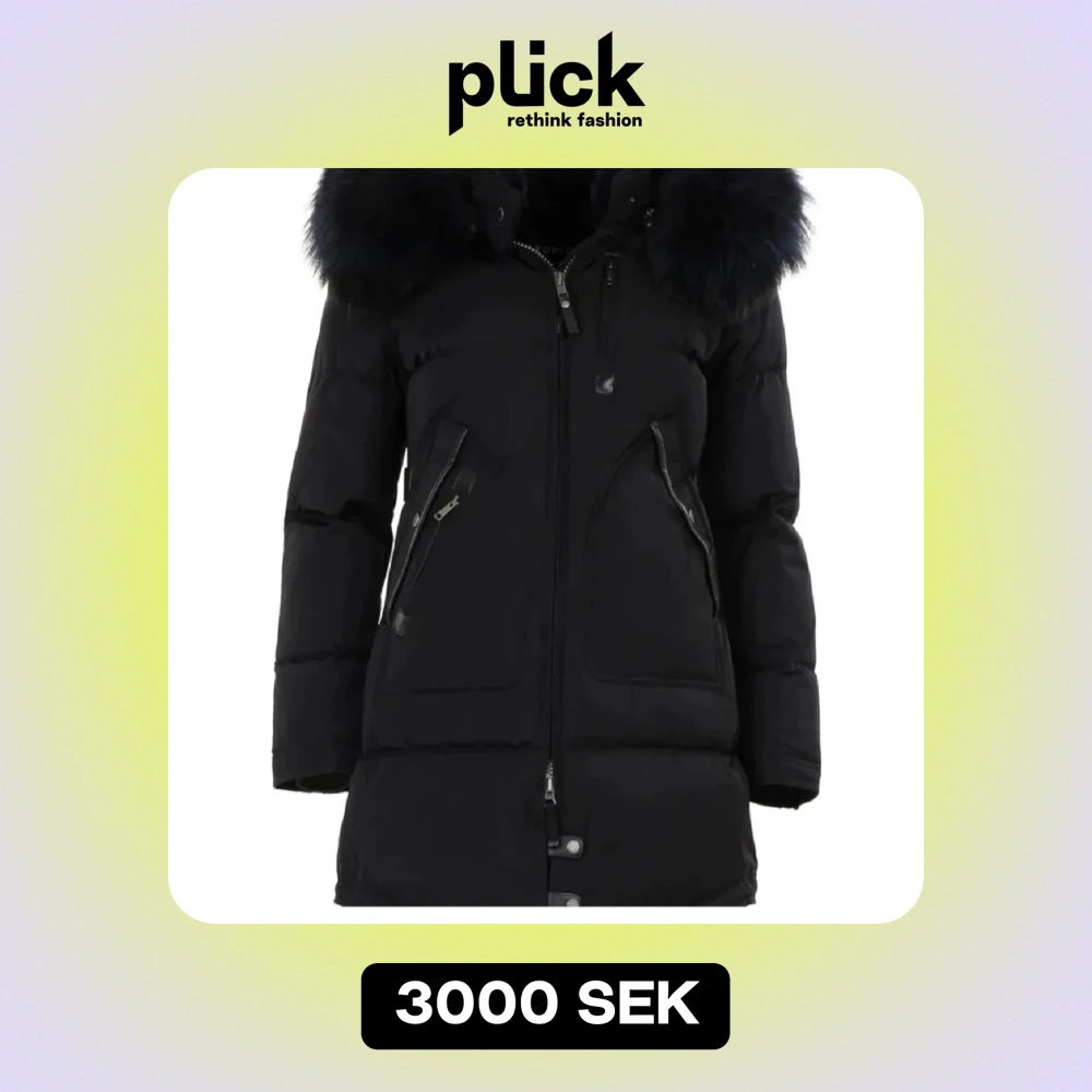 Säljer en snygg svart dunjacka med stor pälshuva. Jackan har dragkedja och knappar framtill samt praktiska fickor med dragkedja. Perfekt för kalla vinterdagar och håller dig varm och stilren. Passar både till vardags och festliga tillfällen. Använde Max 4 gånger om ens de säljer pga ingen användning av den. Xs/s pris går att diskutera