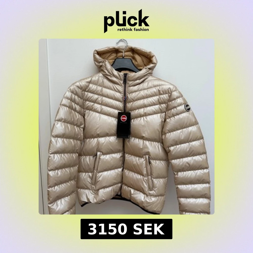Champagnefärgad dunjacka från Colmar med glansig finish och horisontella quiltade partier. Jackan har huva, två fickor med dragkedja och Colmar-logga på ärmen. Stängs med dragkedja framtill och har en snygg, modern look som passar till streetwear.