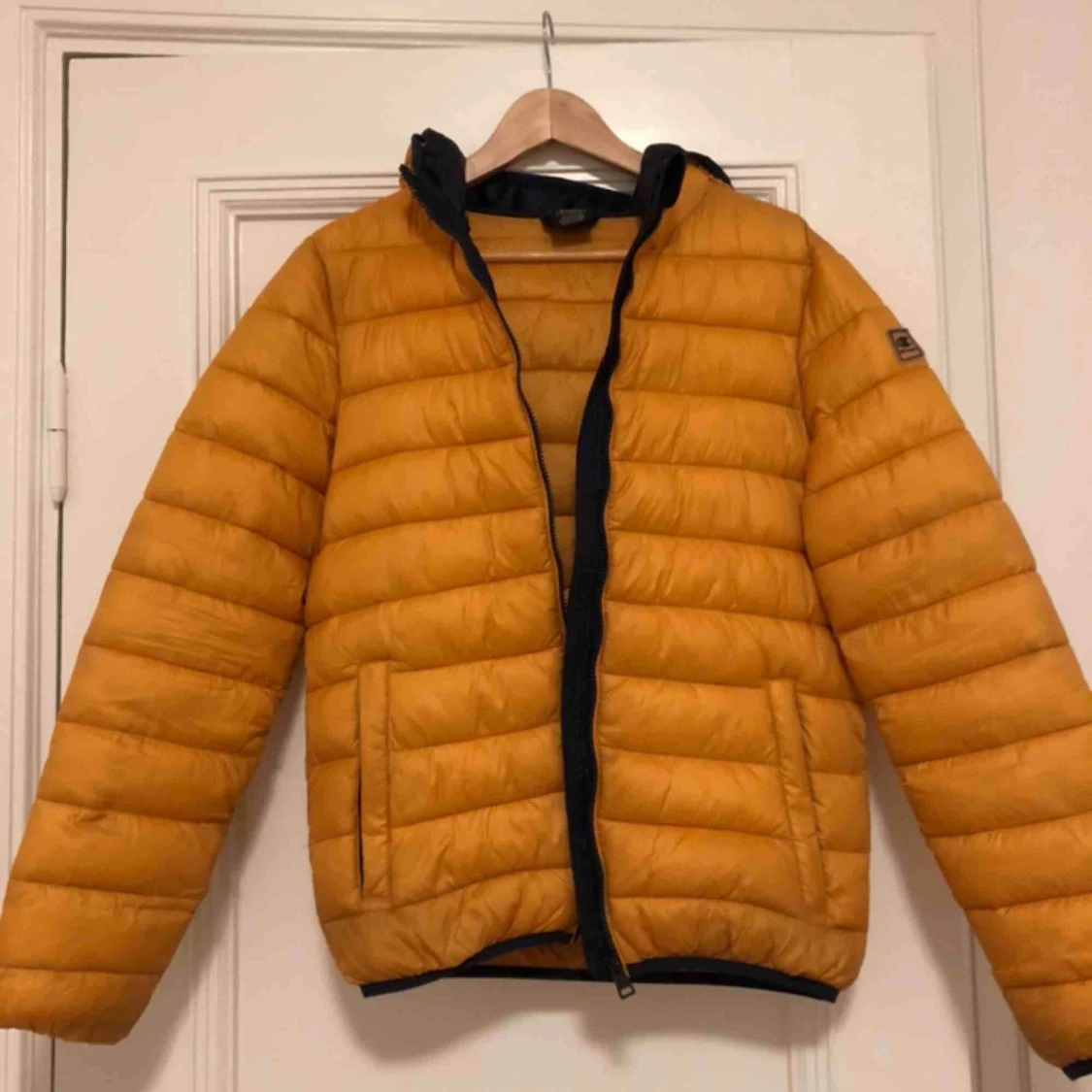 En gul champion dunjacka. Väldigt skön och en mycket bra kvalitet. Köptes för ett år sedan. Storlek s men passar m. Kunden står för frakten :).