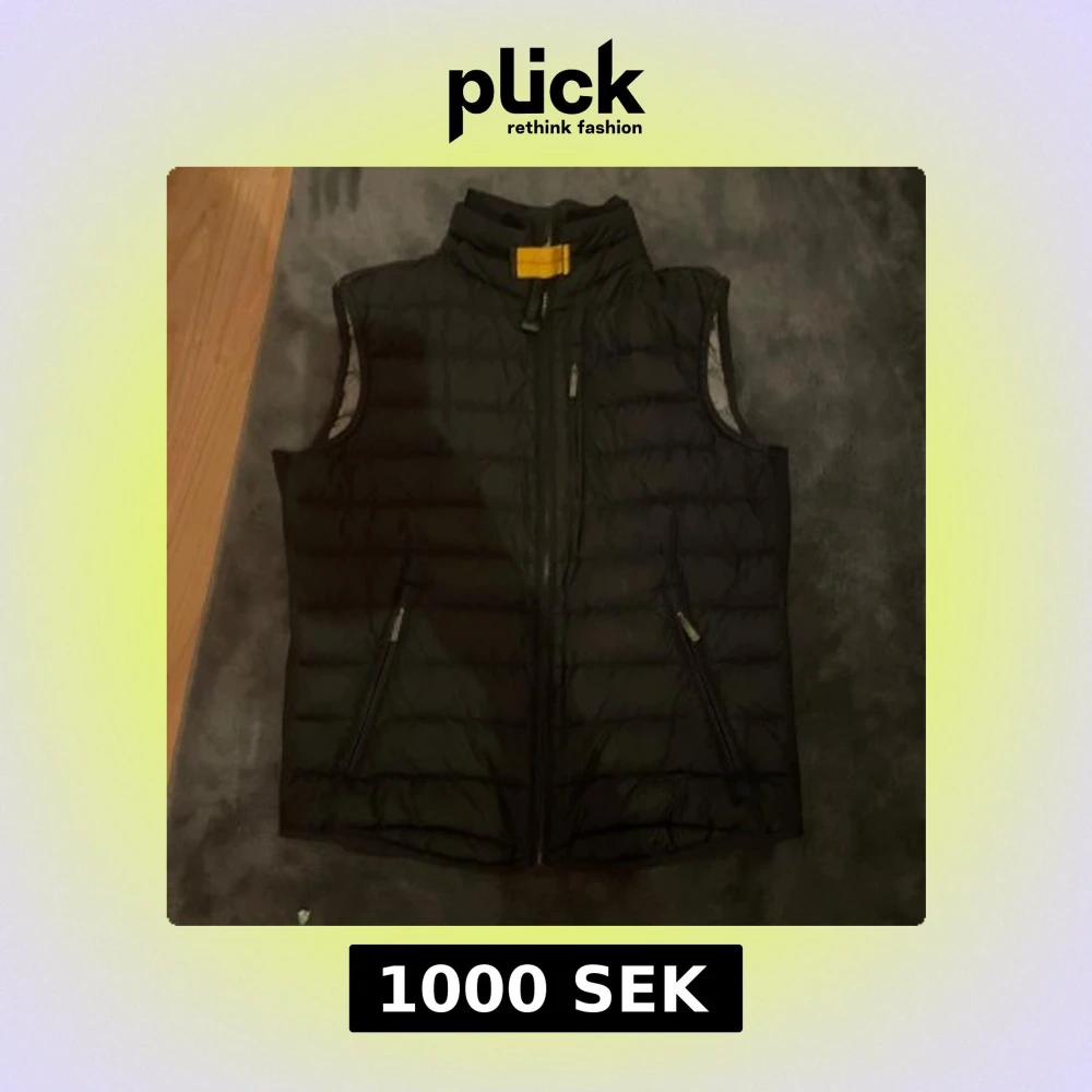 Svart dunväst från Parajumpers med hög krage och dragkedja framtill. Västen har två snedställda fickor med dragkedja och ett broderat märke på ryggen vid nacken. Perfekt för lager-på-lager och stilren look. Storleken är 24-26. Finns inga skador eller någonting på den heller och finns qr så man kan checka om den är riktig