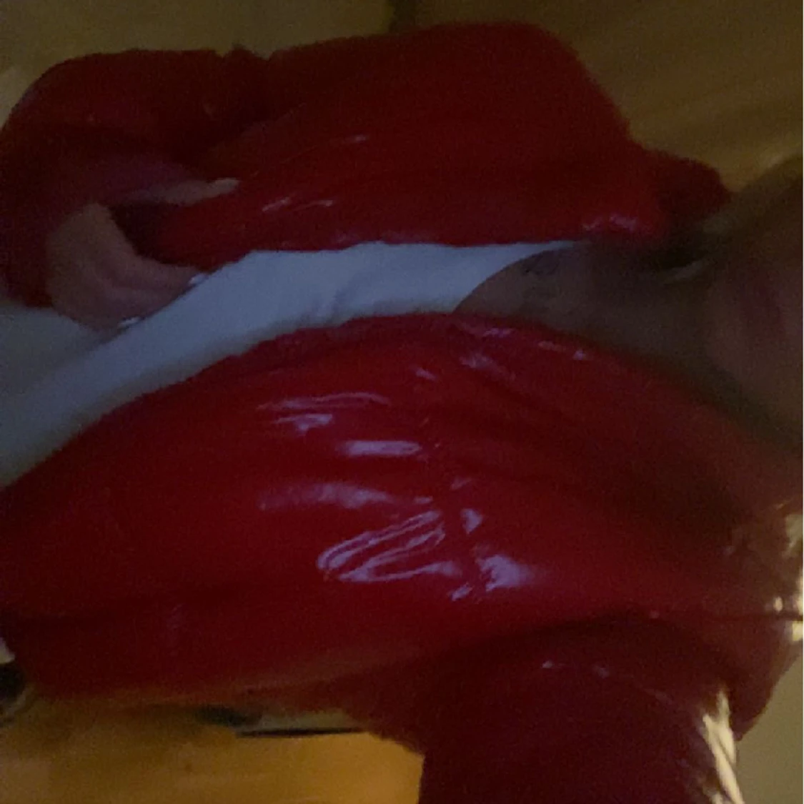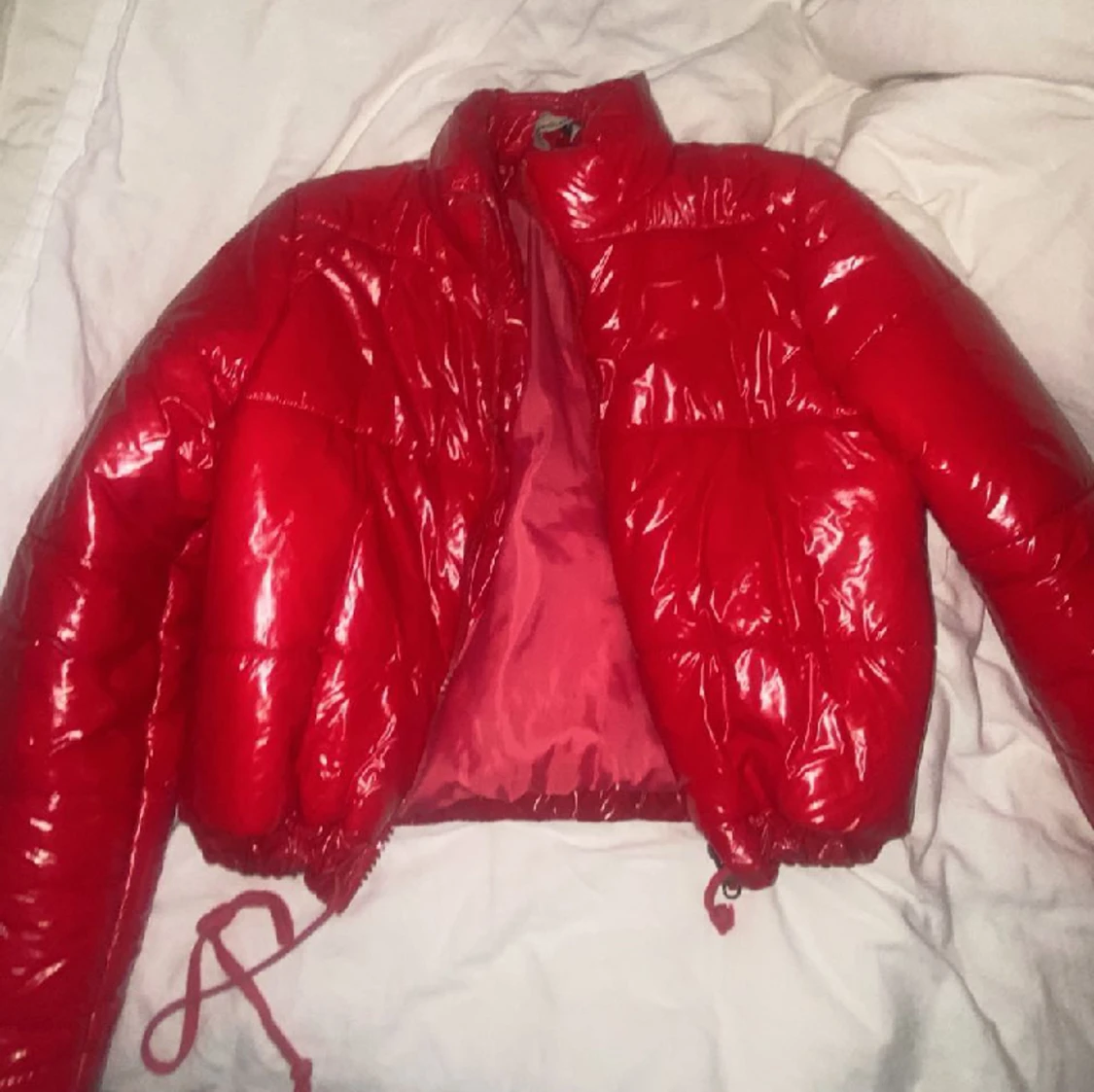Röd pufferjacka som jag använde förra vintern, inga defekter!