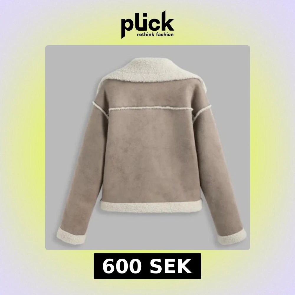 Snygg beige teddyjacka med vit fuskpäls på krage, ärmslut och nederkant. Jackan har dragkedja framtill, två fickor och en loose passform. Perfekt för kalla dagar när du vill vara både varm och trendig.