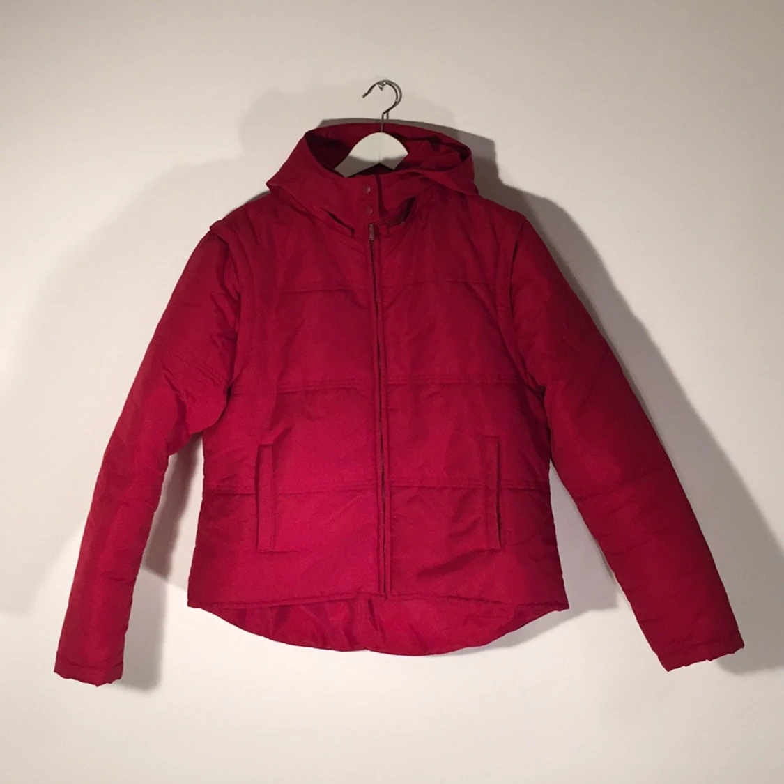 Red coat with removable hood and arms