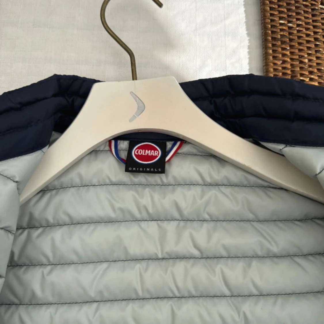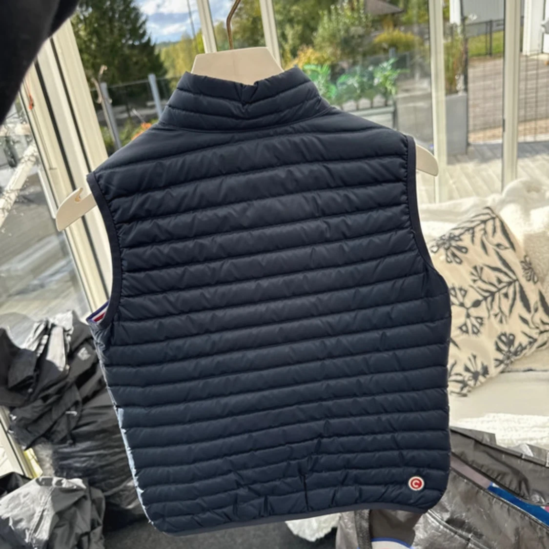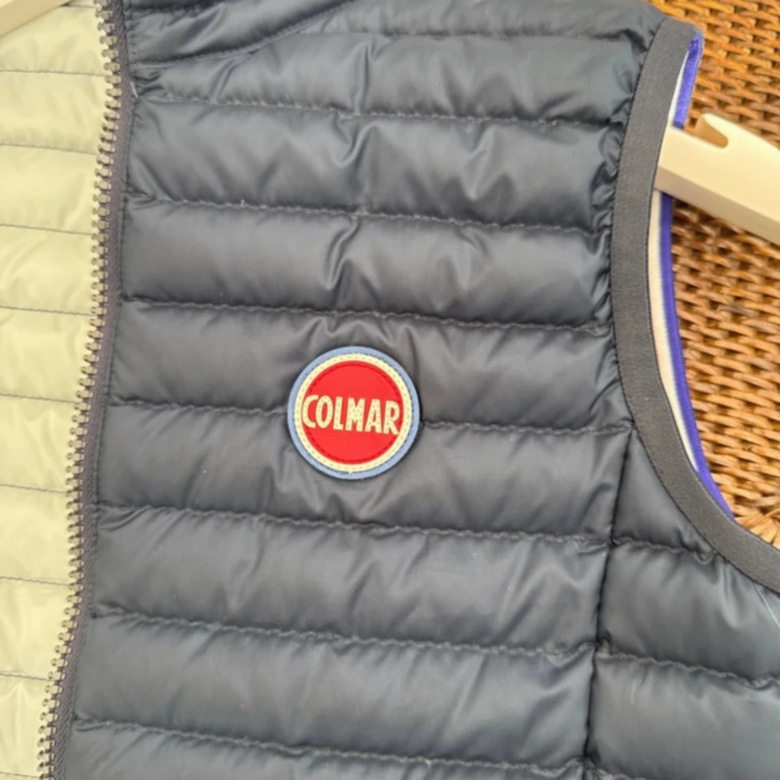 Snygg mörkblå dunväst från Colmar med quiltad design och två dragkedjefickor framtill. Västen har hög krage, Colmar-logga på bröstet och insida i ljusgrått. Perfekt för lager-på-lager under kyliga dagar.