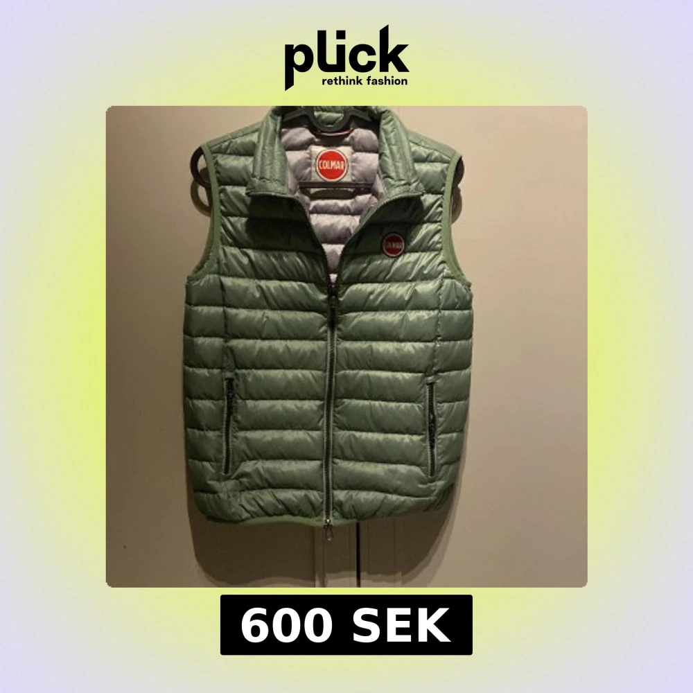 Snygg ljusgrön dunväst från Colmar med quiltad design och dragkedja framtill. Västen har två fickor med dragkedja.Klassisk Colmar-logga på bröstet. Perfekt att slänga under en hoodie eller tröja för extra värme. Köpt för en månad sedan och sparsamt använd.