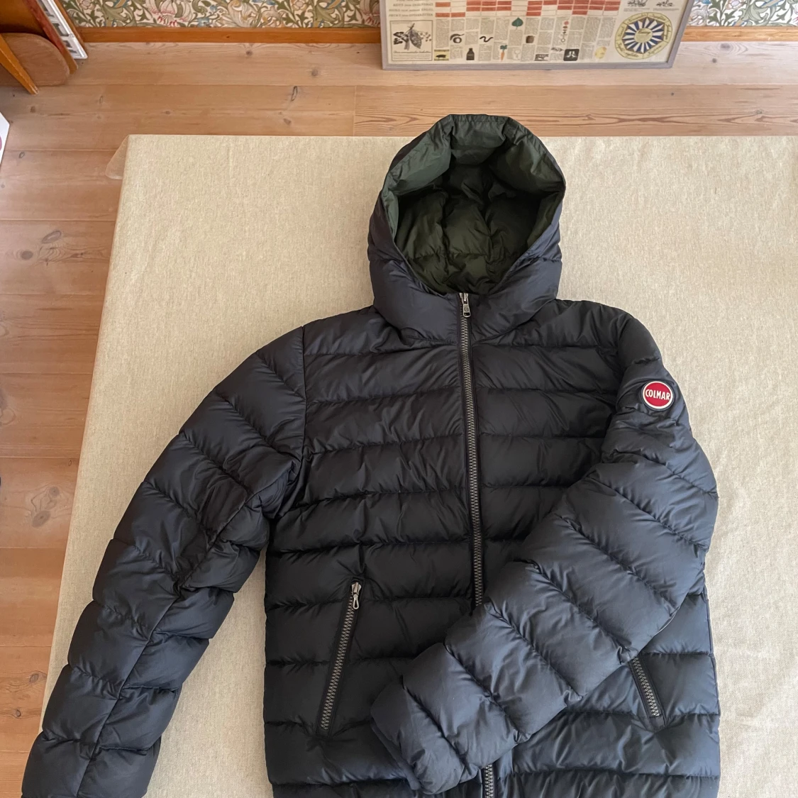 Säljer en svart pufferjacka från Colmar med dragkedja och huva. Jackan har en quiltad design och är perfekt för hösten/vintern, säljer billigt för behöver pengar. Tveka inte om att höra av er om någon fråga! Små tecken på användning men inget man ser tydligt