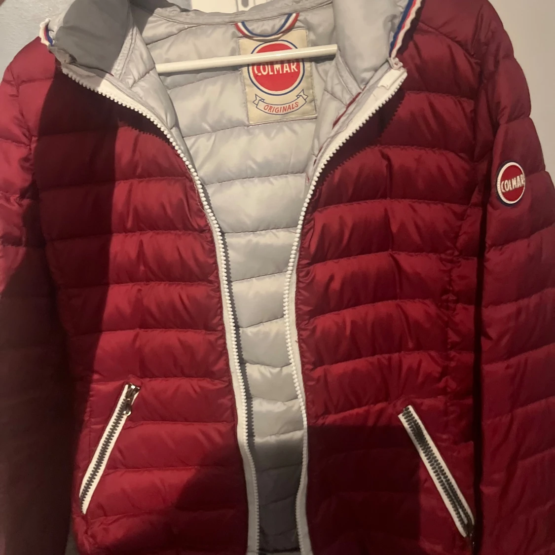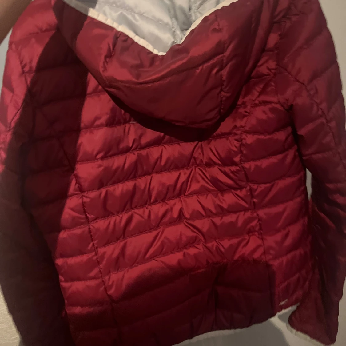 Vinröd dunjacka, tunn och bra till träning. Köpt på Sellpy. Storlek 34-36 (xs-s) passar bra. Bra skick inga deffekter eller så, dragkedjan är ny!