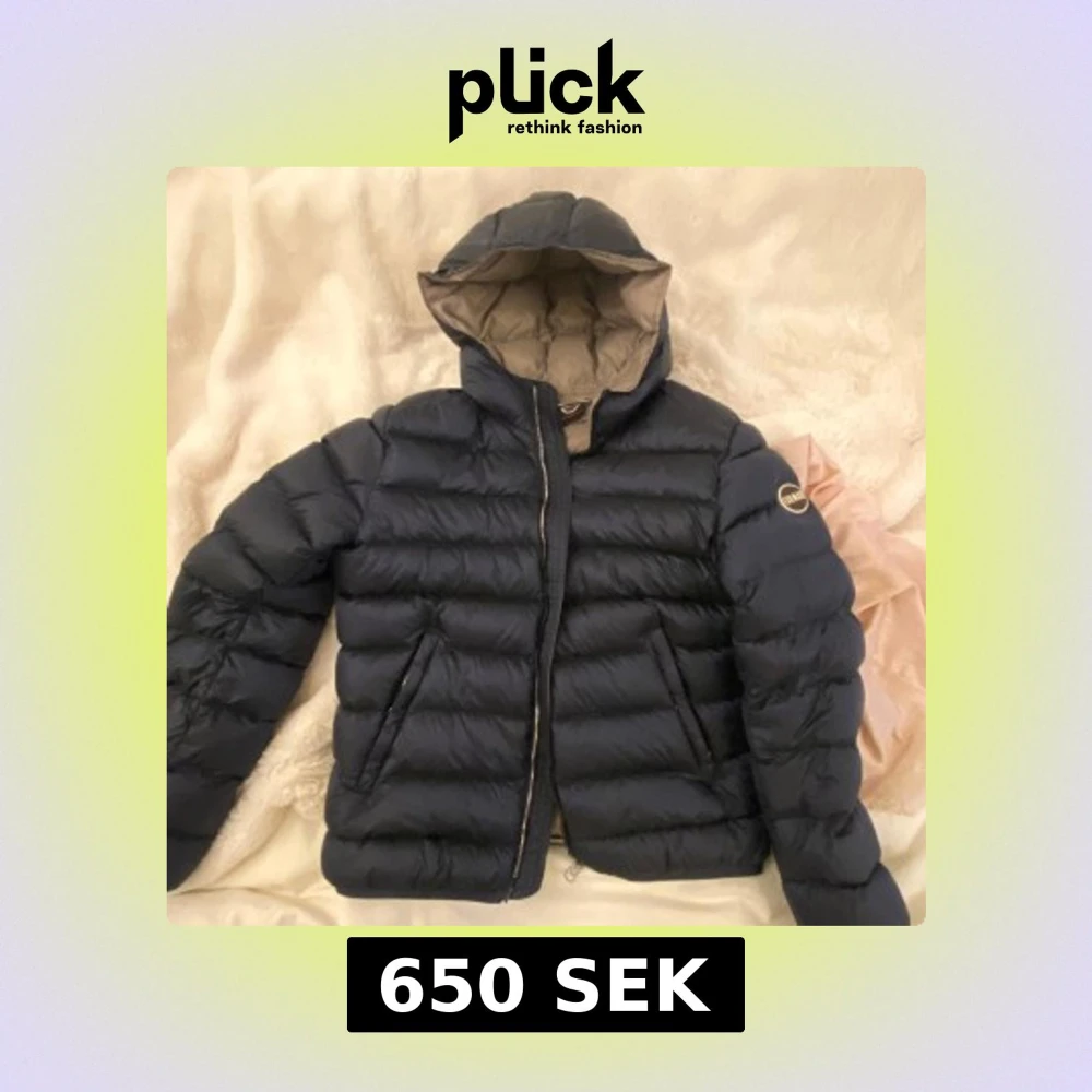 Säljer en snygg mörkblå dunjacka från colmar med dragkedja och huva. Insidan är ljusare och ger en fin kontrast. Dragkedjan är tyvärr sönder men är nog lätt att laga! Men annars i super skick🥰