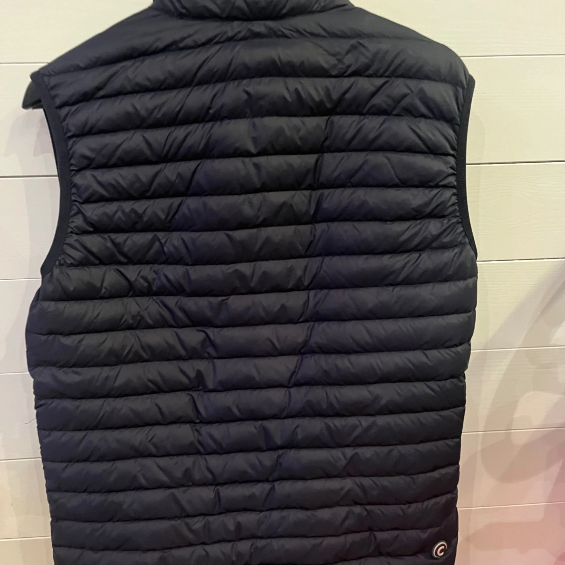 Snygg svart dunväst från Colmar med quiltad design och hög krage. Västen har två praktiska fickor med dragkedja och ett Colmar-märke på bröstet. Perfekt att slänga över en hoodie för extra värme. Stängs med dragkedja framtill.