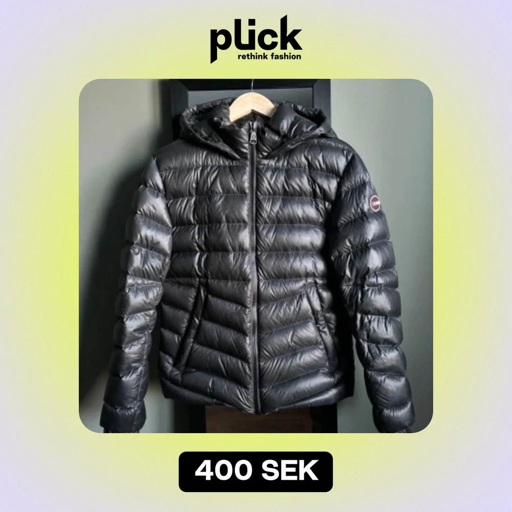 Mörkgrå, glansig Colmar dunjacka. Har tyvärr ”fläckar” från att det regnat på den, märks dock inte i alla ljus. Pyttelitet hål på framsidan. I övrigt bra skick. Storlek 46 men passar bra på S/M